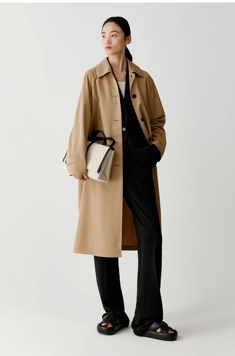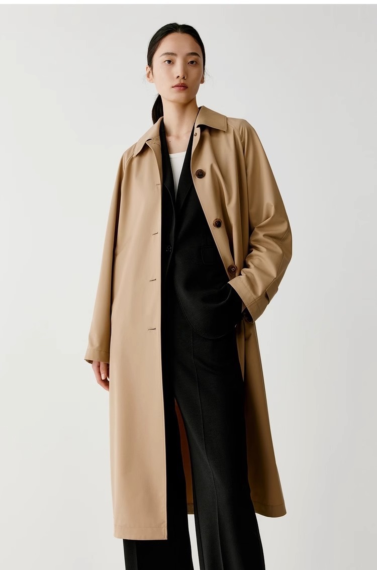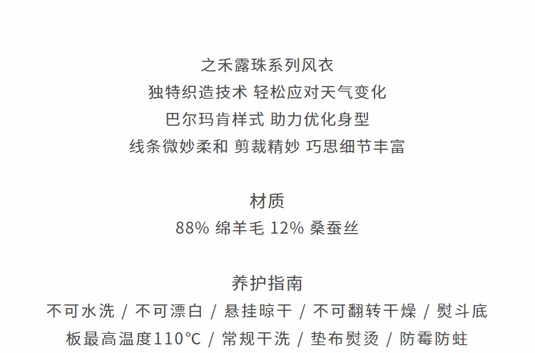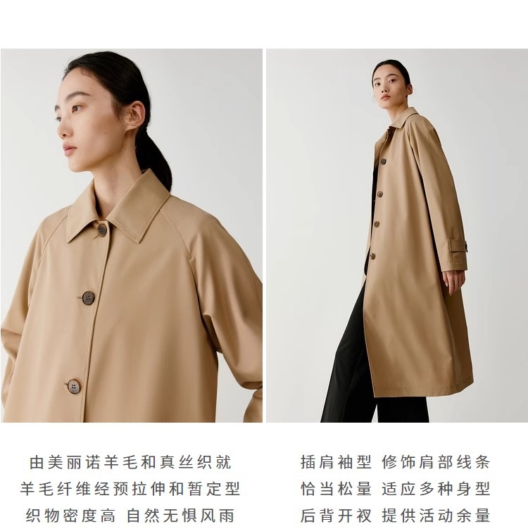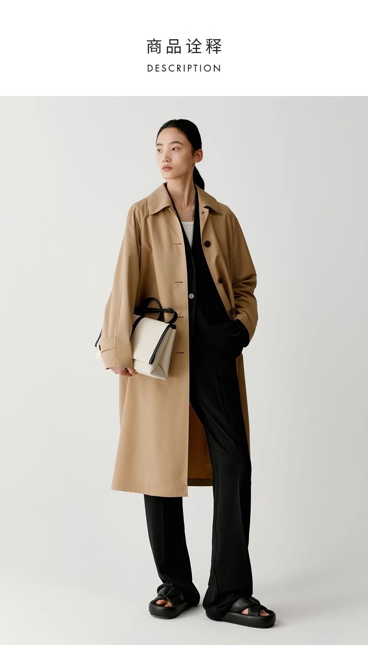 [Dew series] ICICLE hehe women's clothing 2024 early spring new silk wool worsted plain cloth trench coat