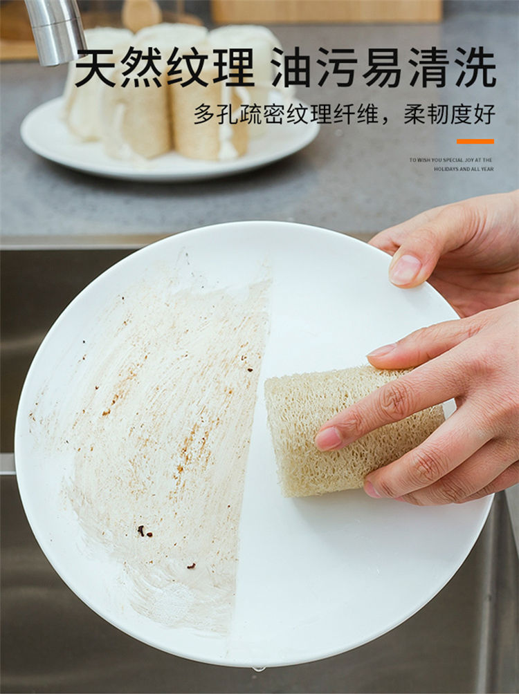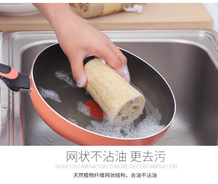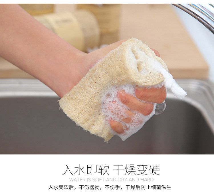 [Dish brush pot] natural loofah sponge scouring pad water melon scoop rag kitchen non-stick oil wipe