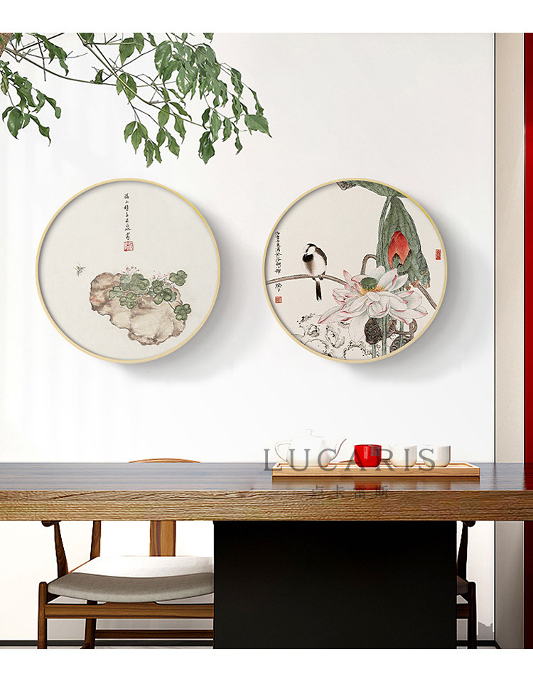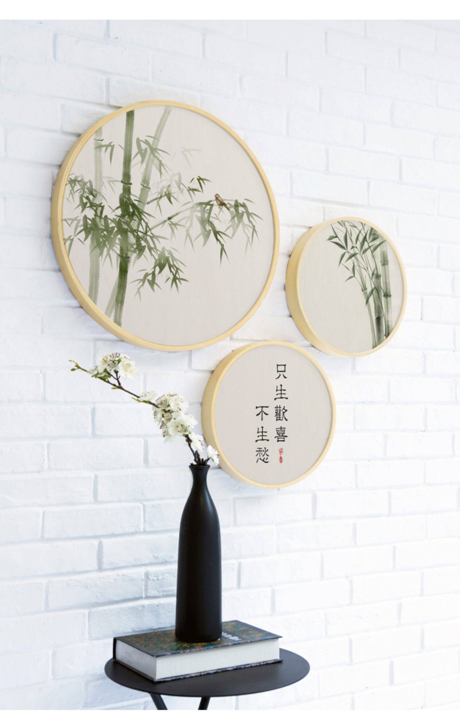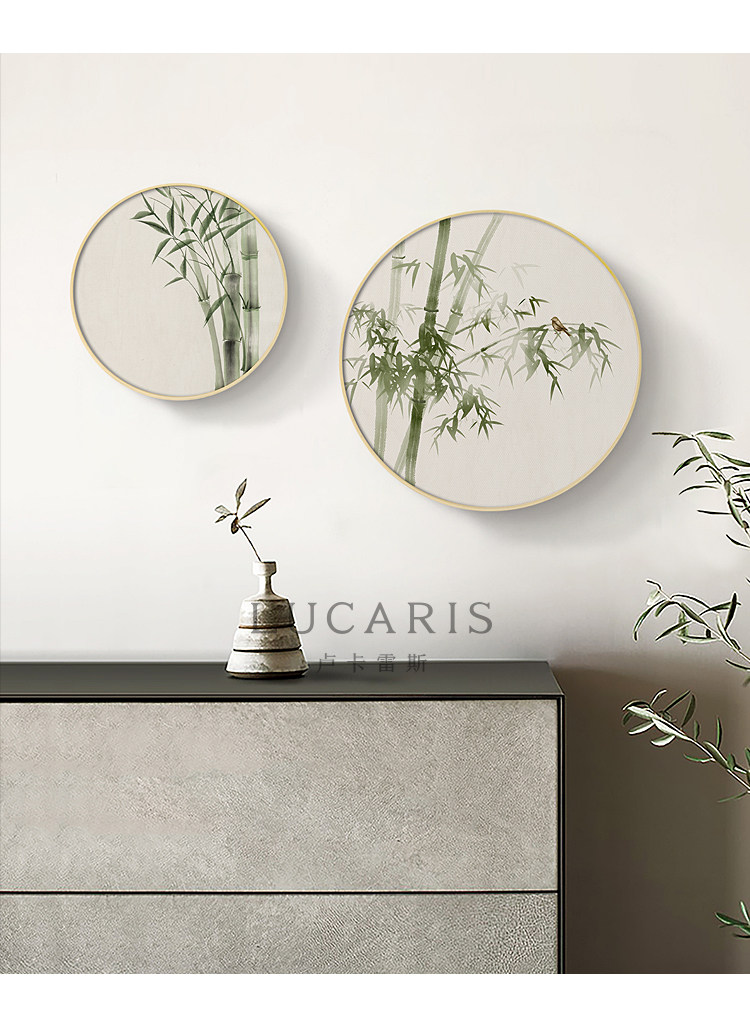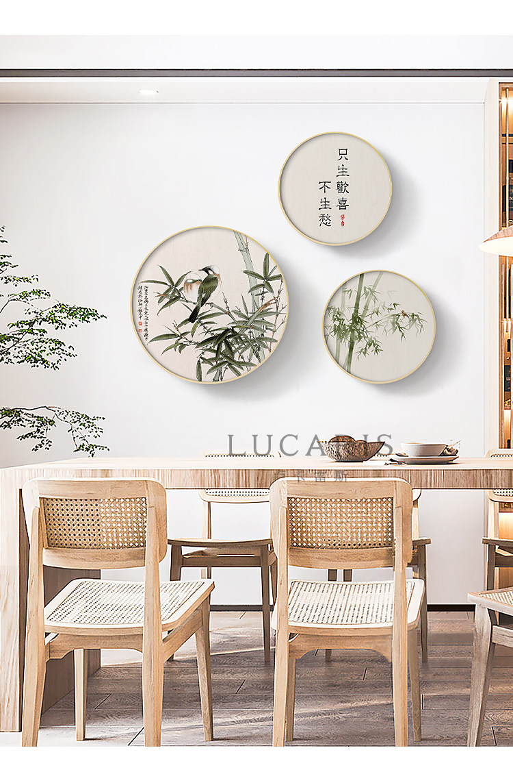 111v wholesale Jade bone New Chinese style log style decorative painting round living room hanging painting flowers and birds bamboo picture fresh