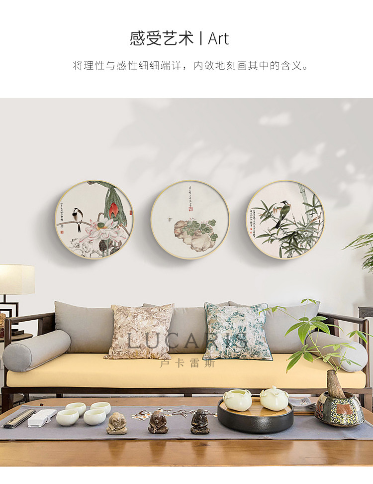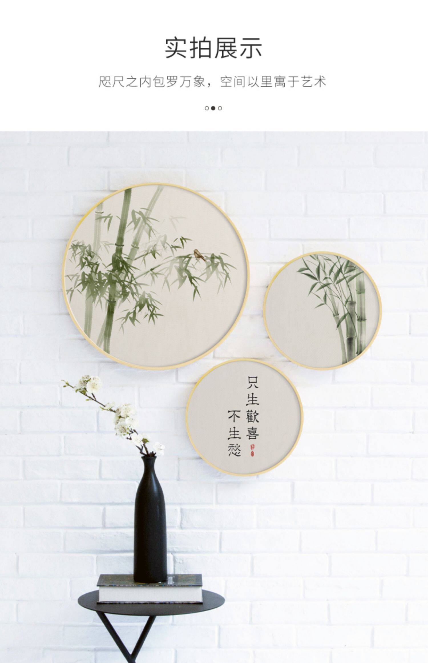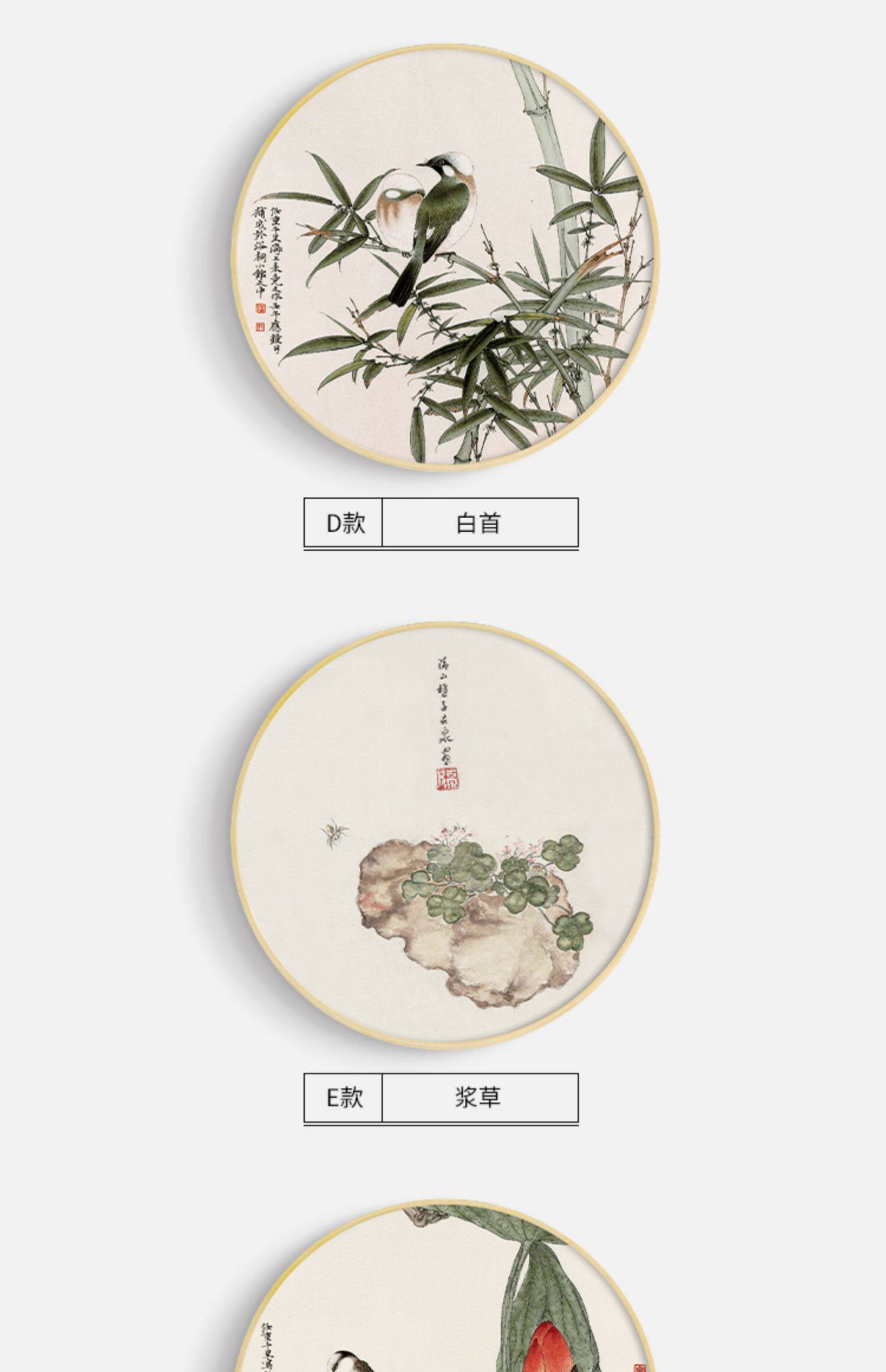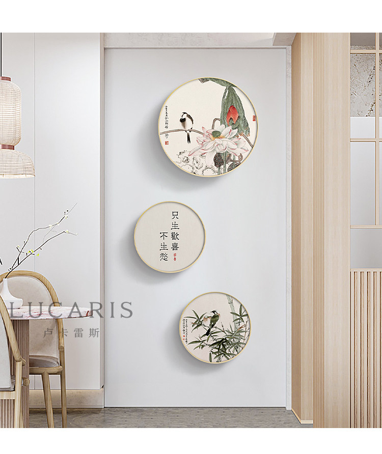 111v wholesale Jade bone New Chinese style log style decorative painting round living room hanging painting flowers and birds bamboo picture fresh