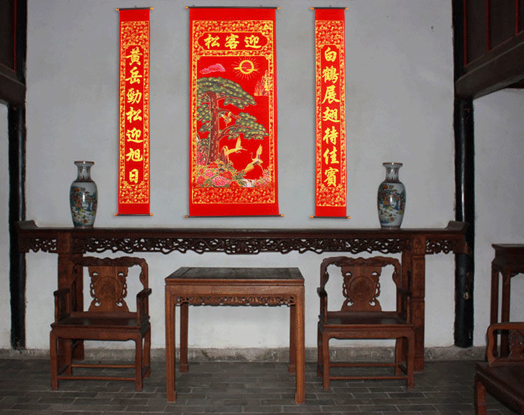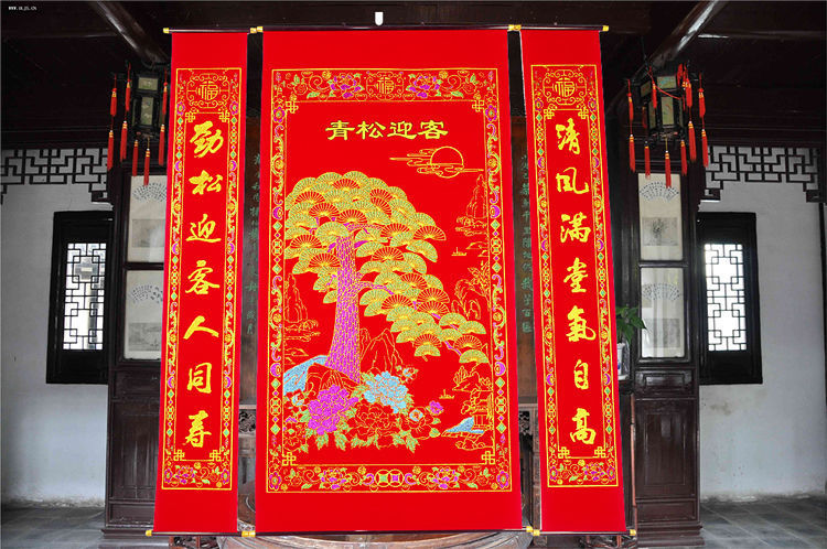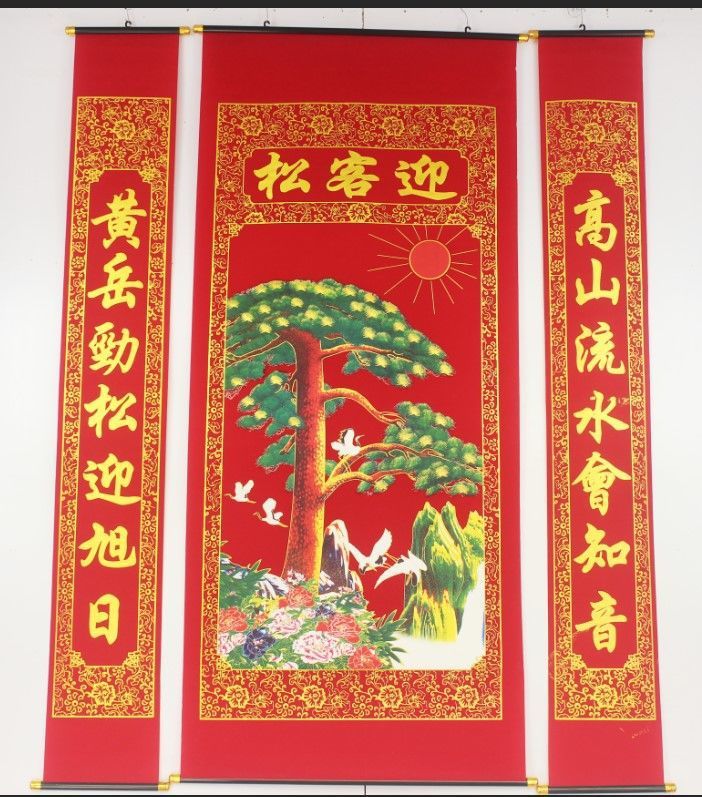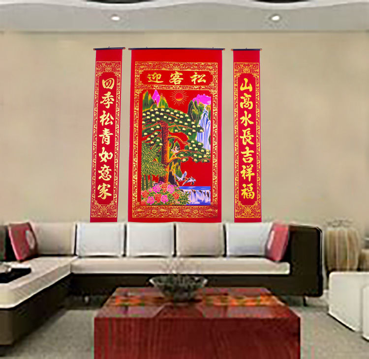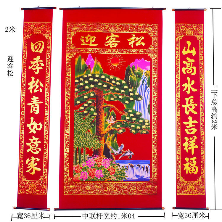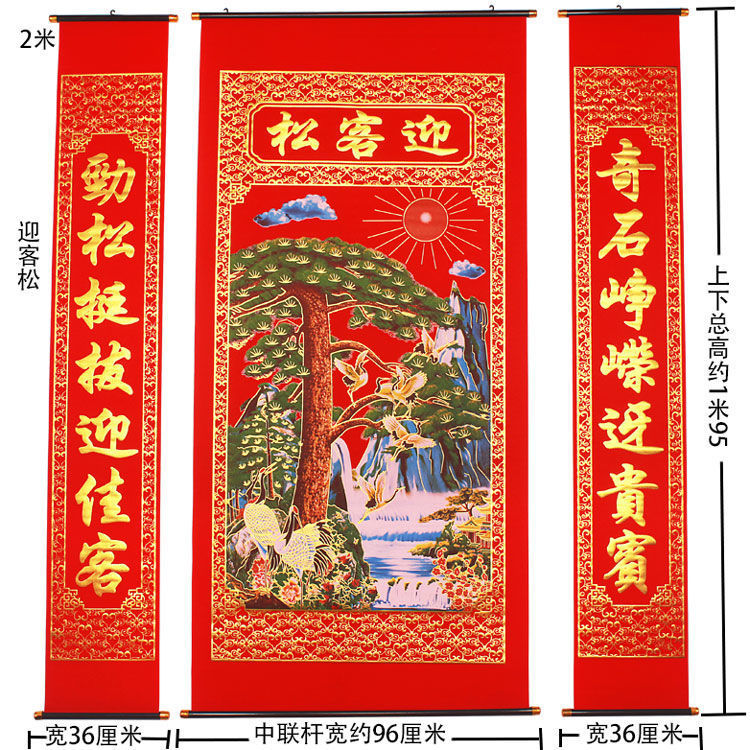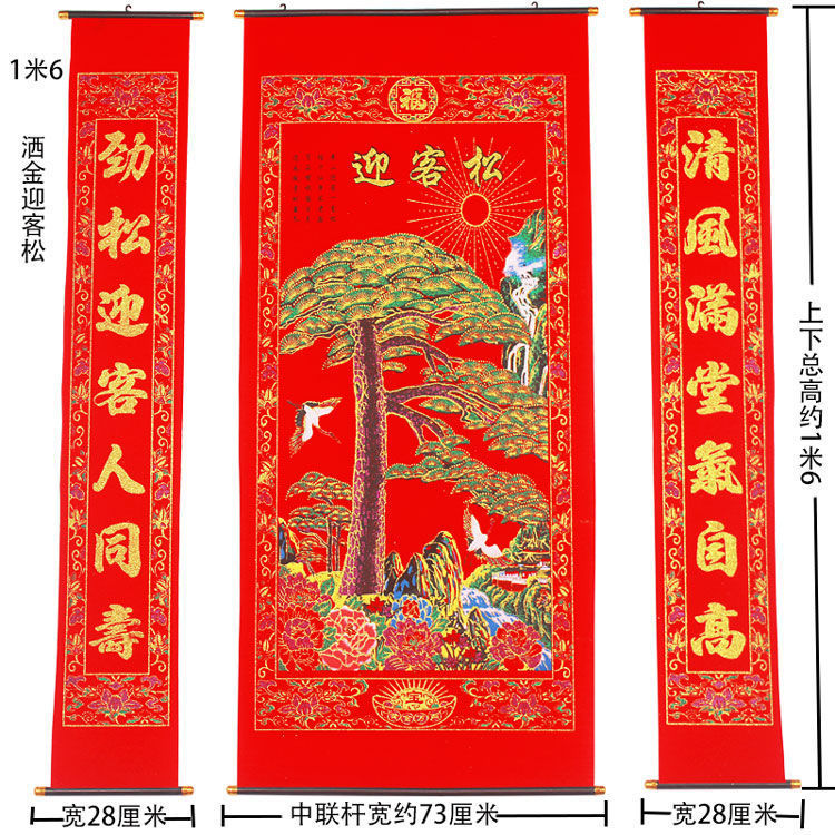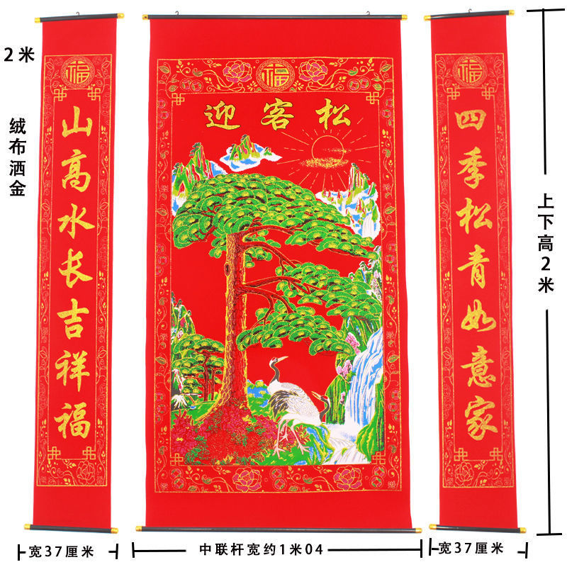 2 M welcome Pine Middle Hall hanging painting living room hanging painting couplet flannel gilding