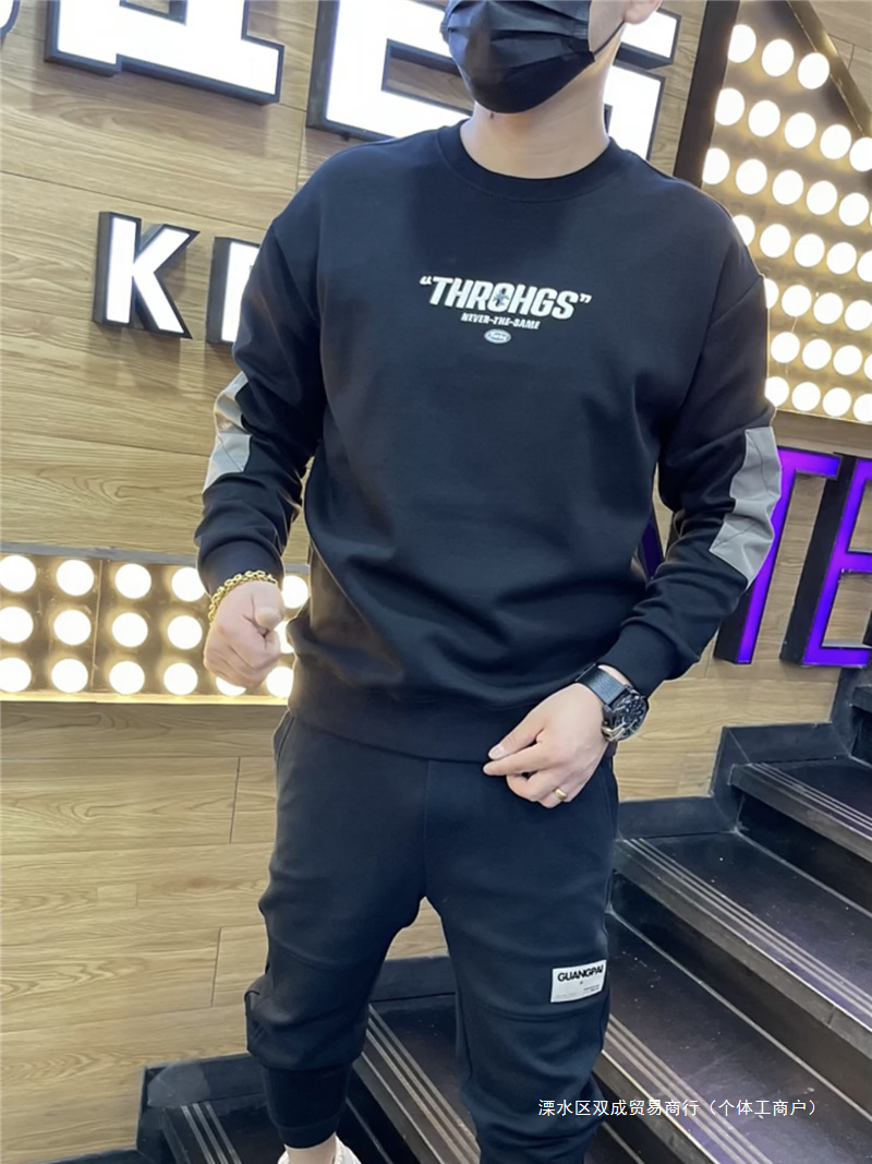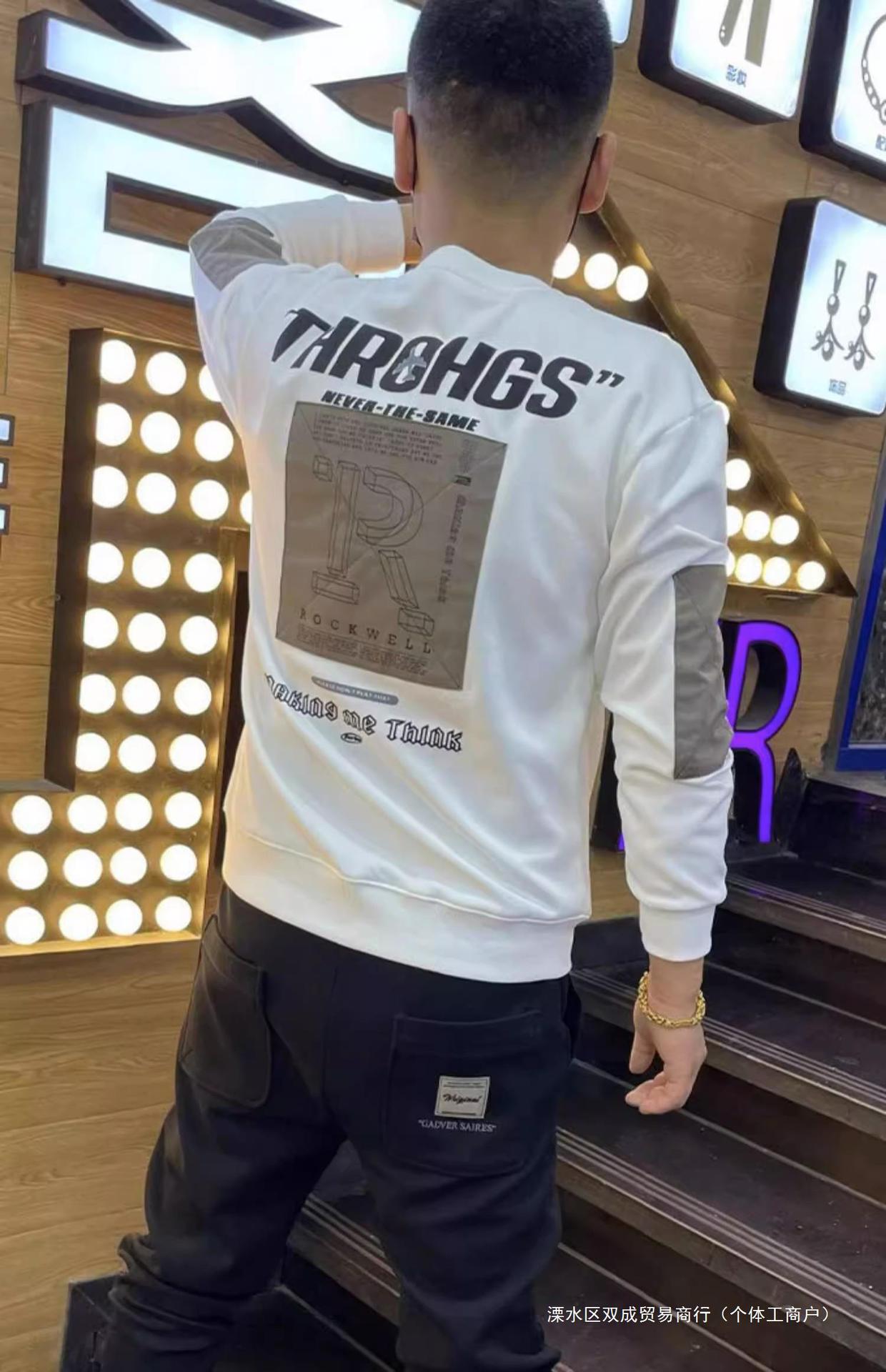 2024 Spring and Autumn New Fashion letter round neck sweater men's Korean-style trendy all-match long sleeve bottoming shirt pullover