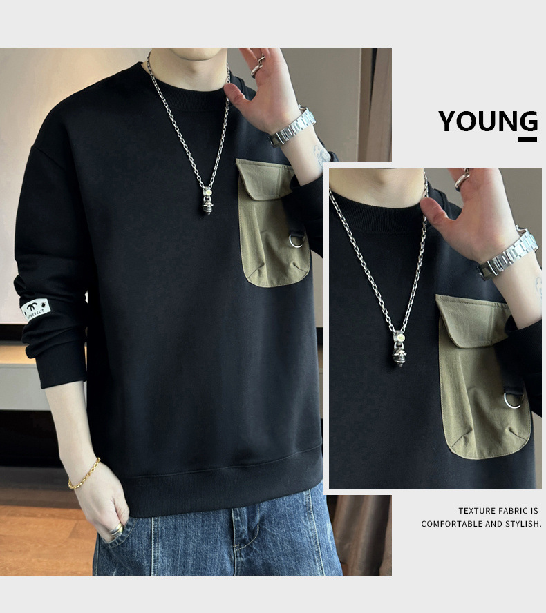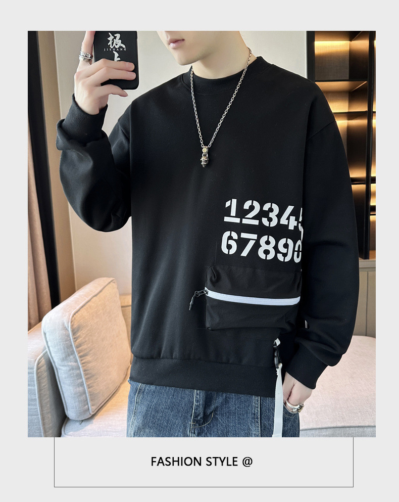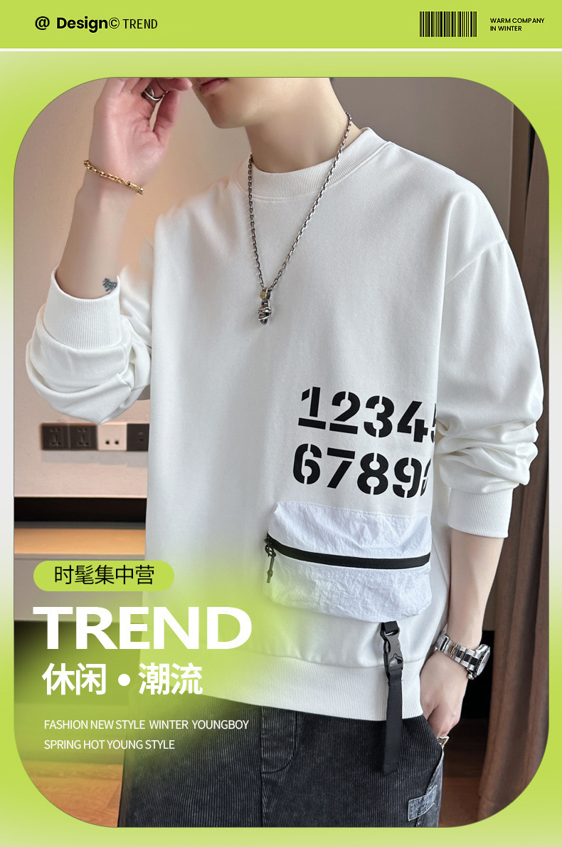 2024 new fashion personalized loose casual pullover sweater men's high school junior high school student fashion top outer wear handsome
