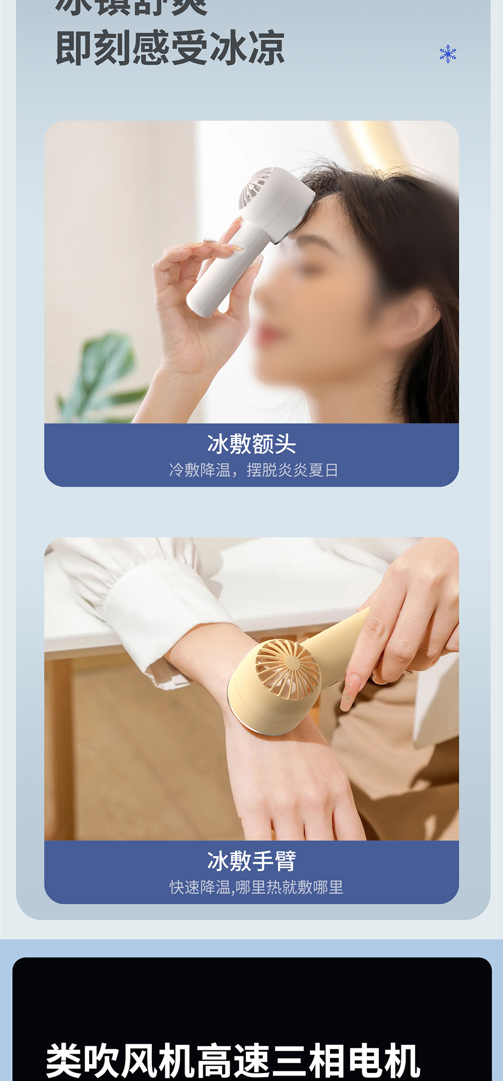 2024 new handheld small fan ice compress refrigeration mini mute portable usb student mini hand held cooling fan