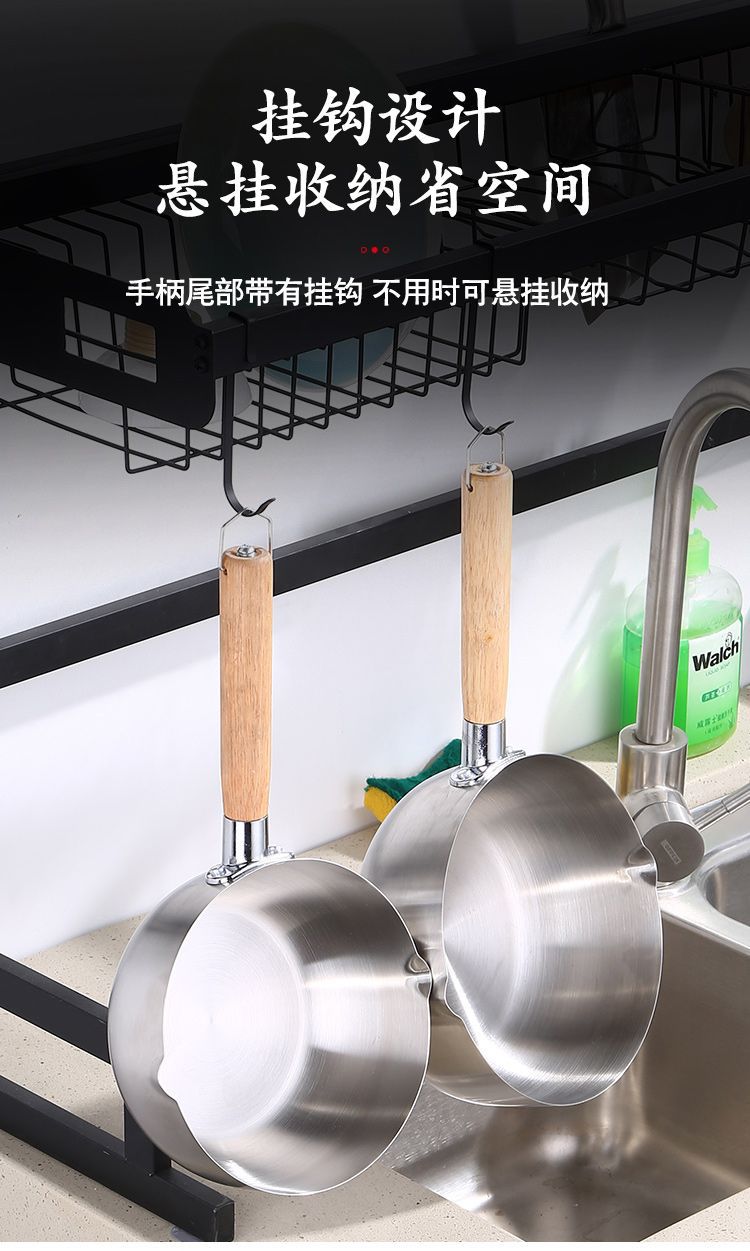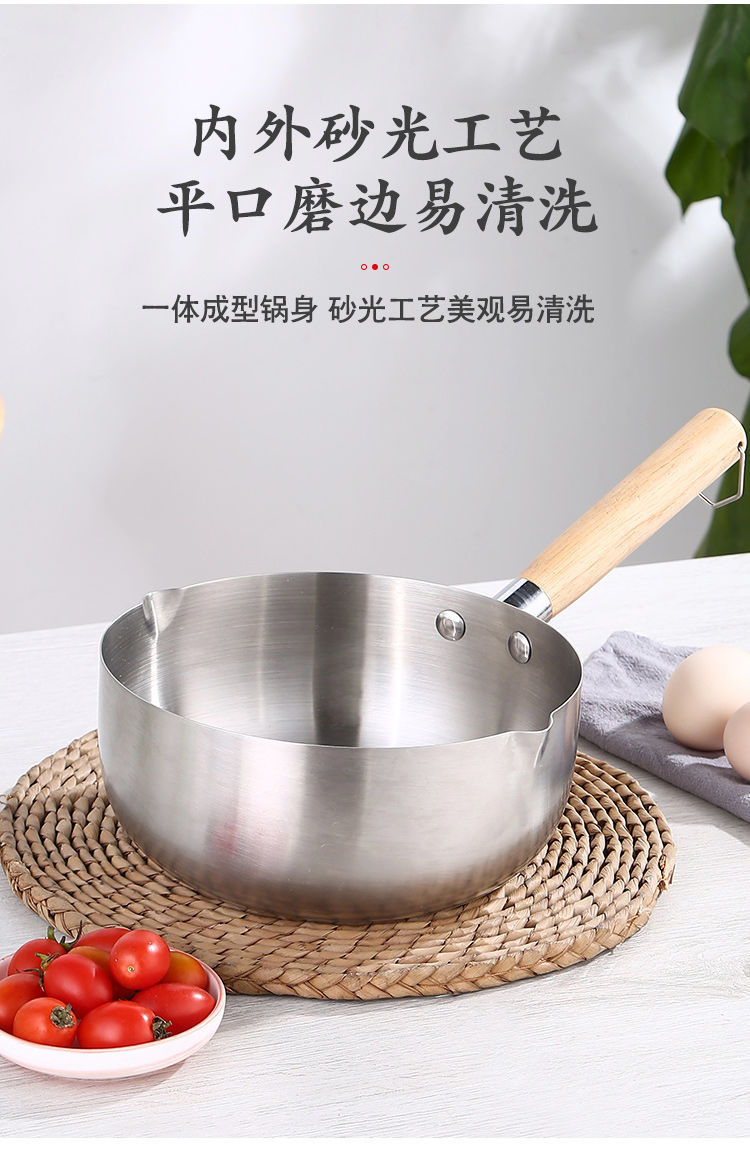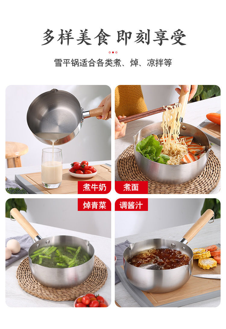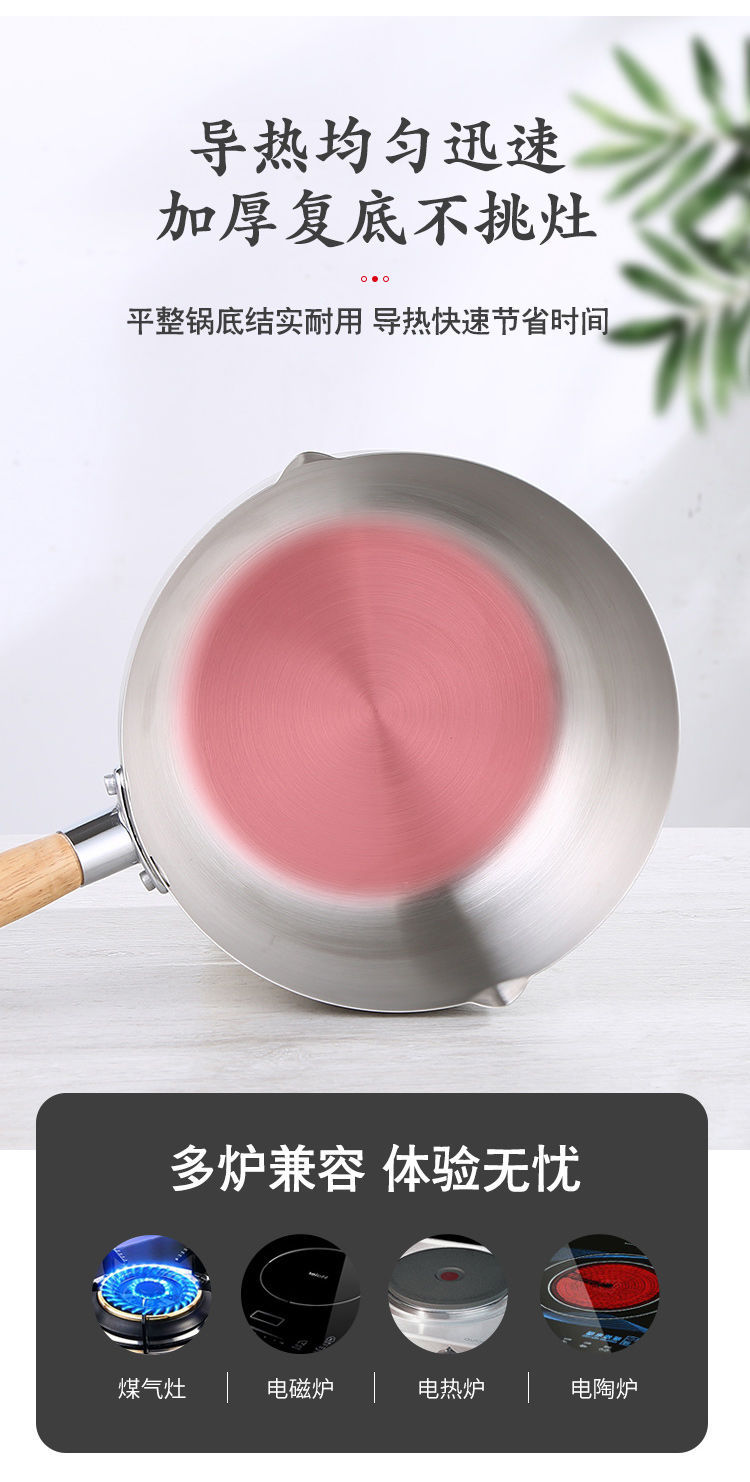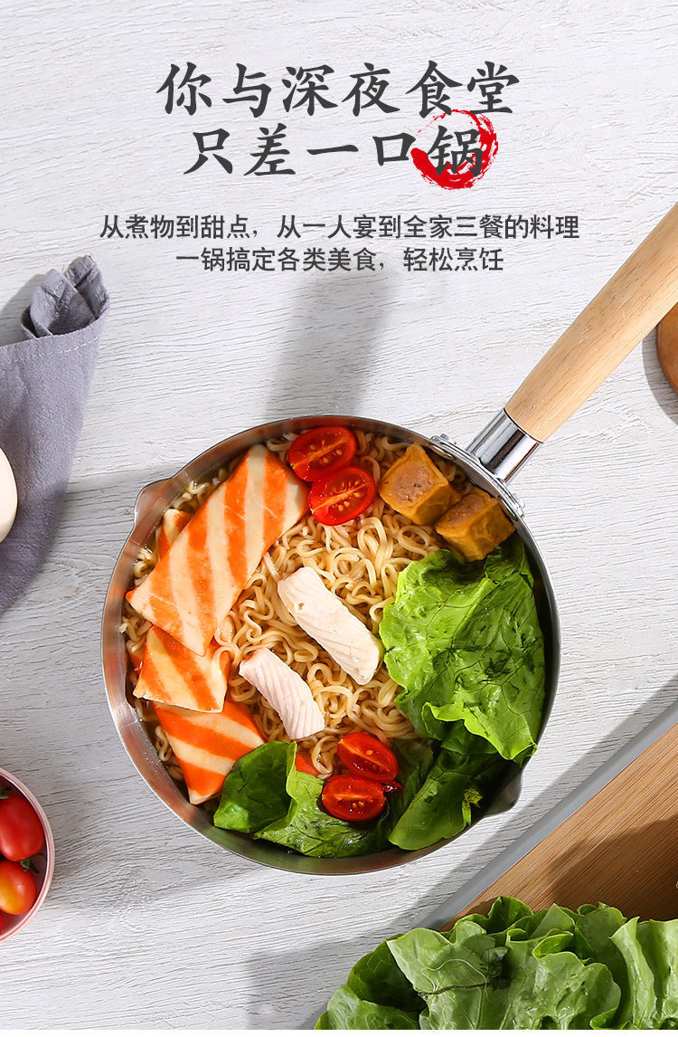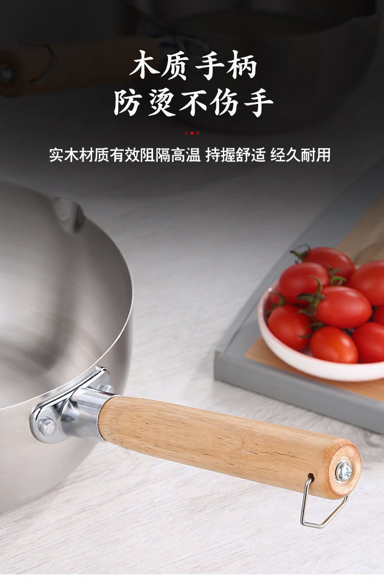 304 stainless steel snow pan milk pot wooden handle dormitory instant noodle pot soup pot instant noodles boiling trouble hot induction cooker