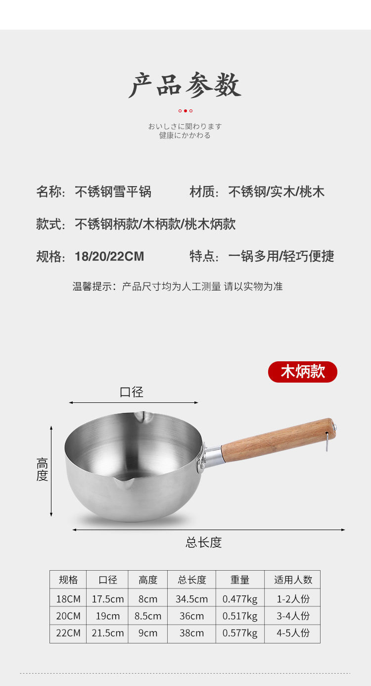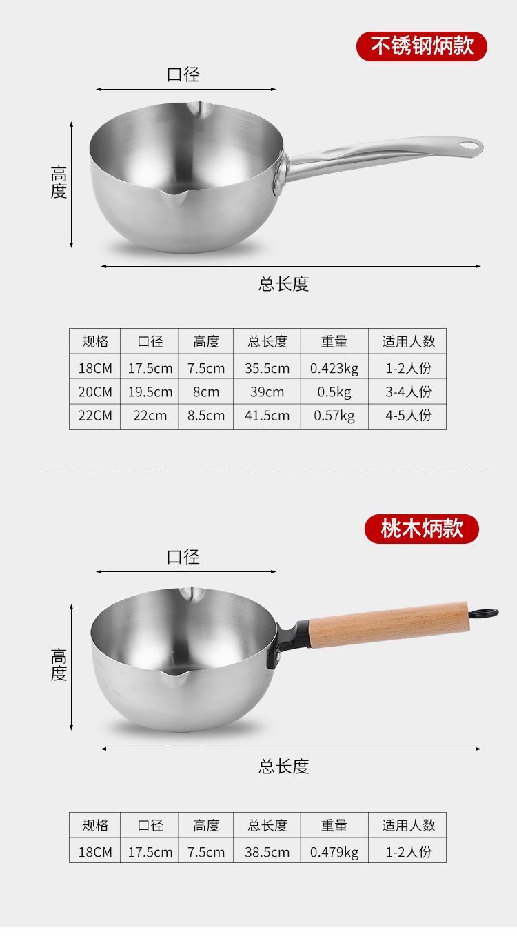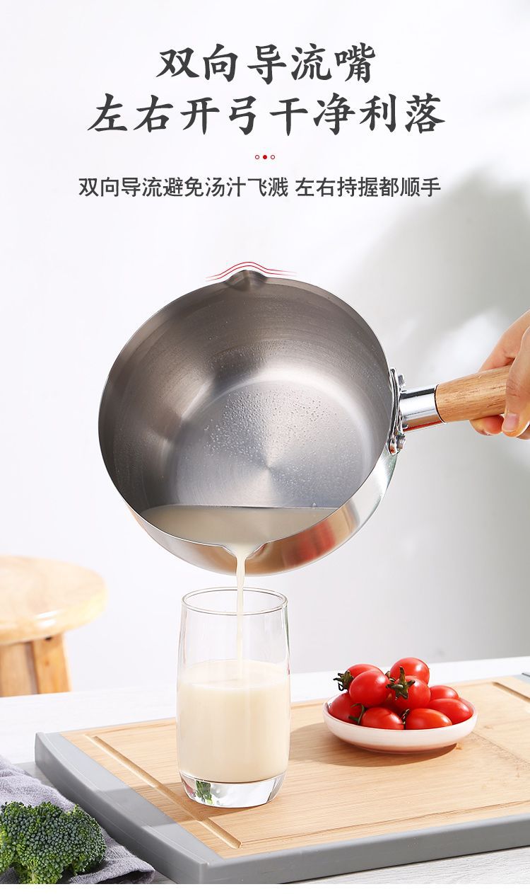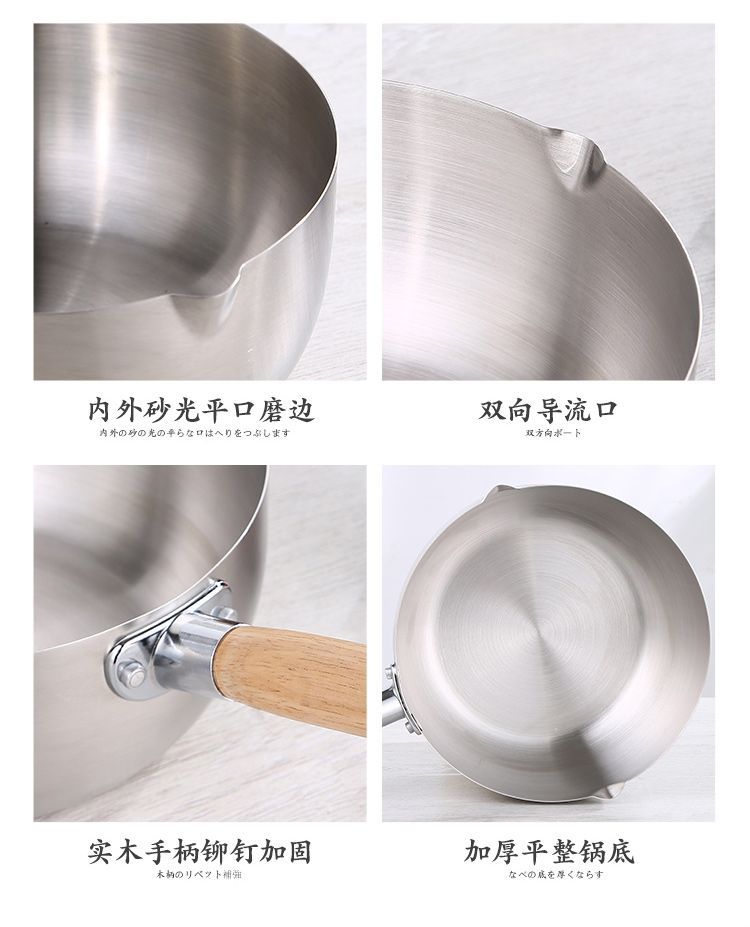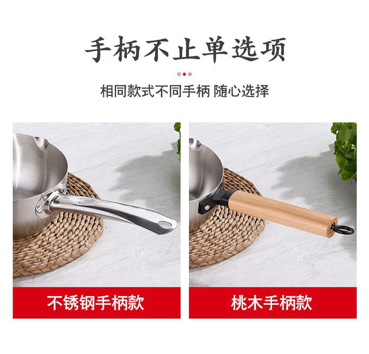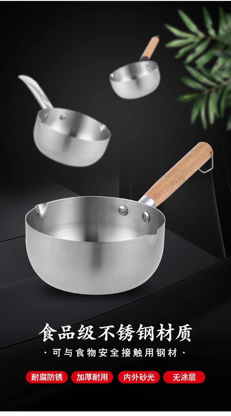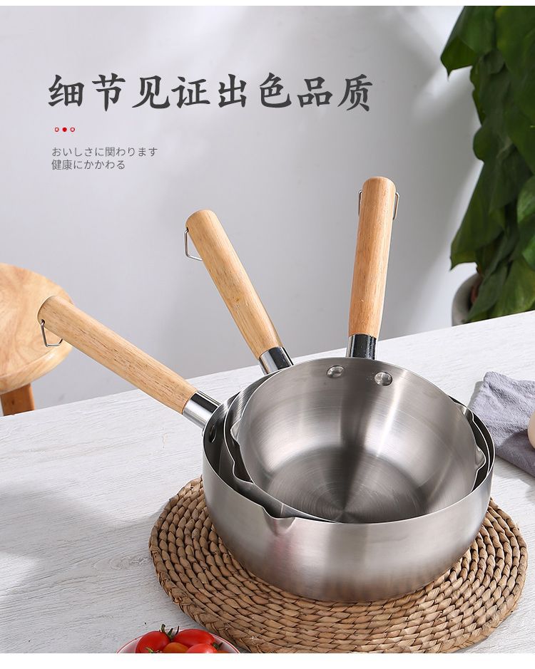 304 stainless steel snow pan milk pot wooden handle dormitory instant noodle pot soup pot instant noodles boiling trouble hot induction cooker