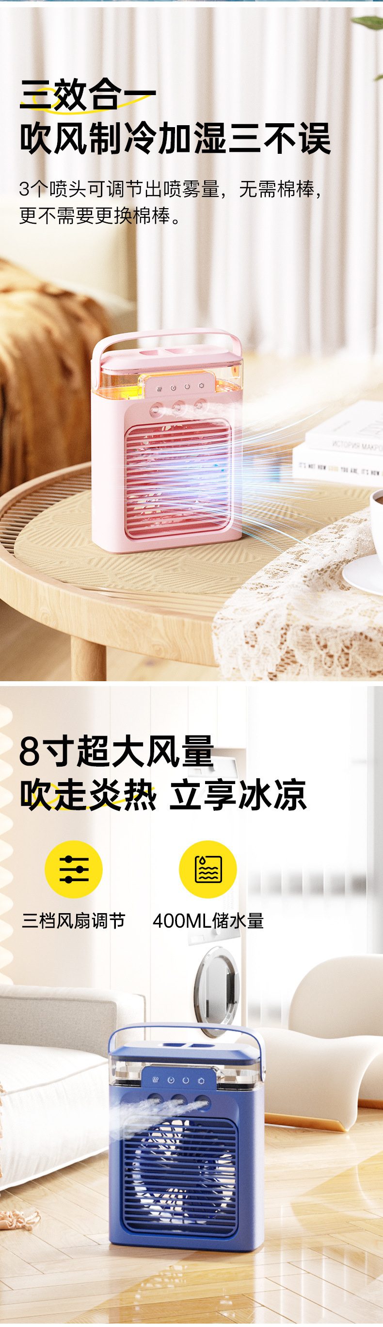 Air conditioning fan household mini desktop ice crystal spray humidification water cooling fan small led night light timing cooling fan