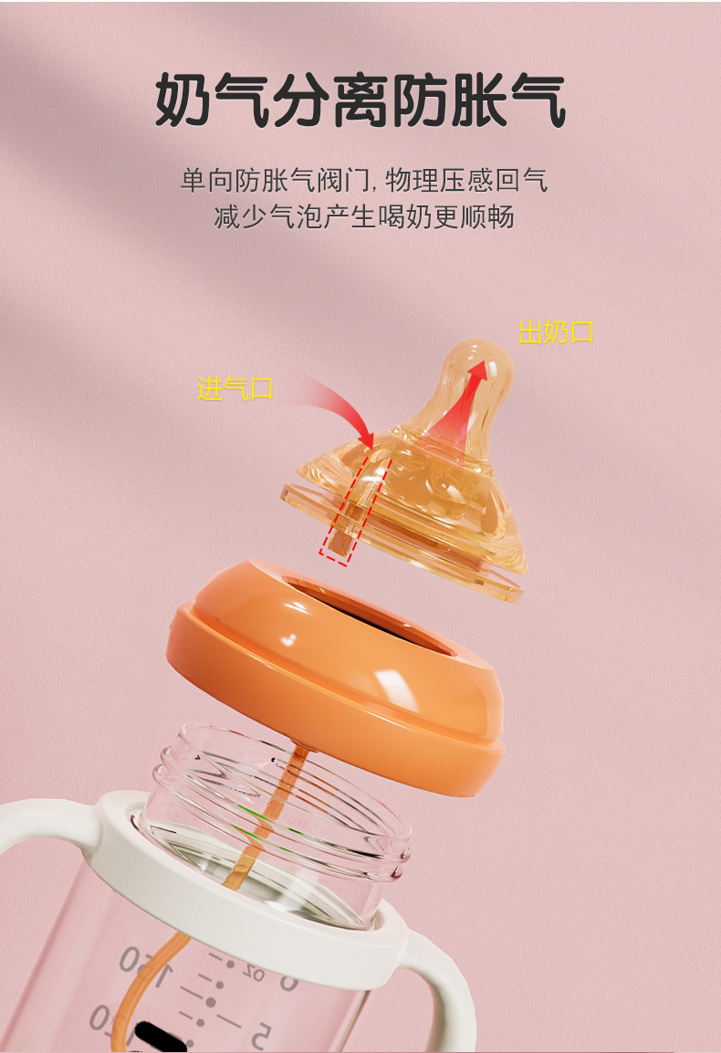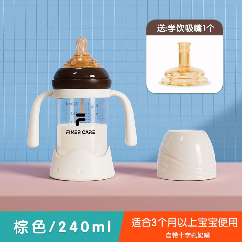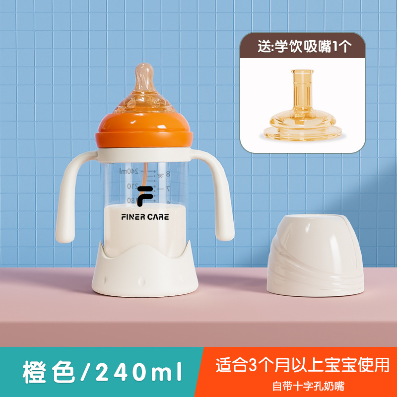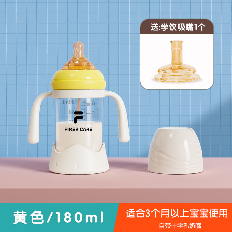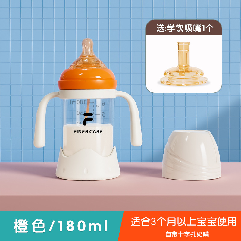 Baby glass feeding bottle newborn wide caliber nipple with straw silicone drop resistant cover baby feeding and weaning artifact