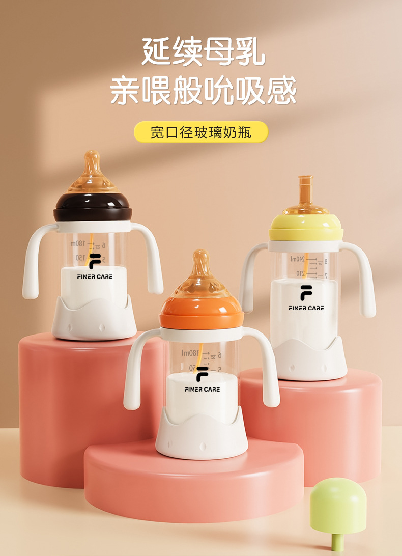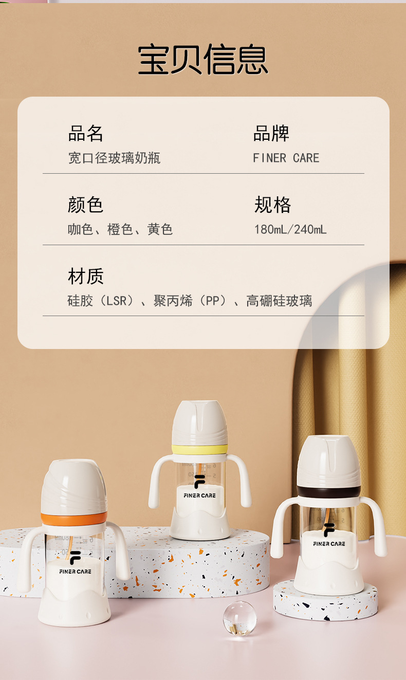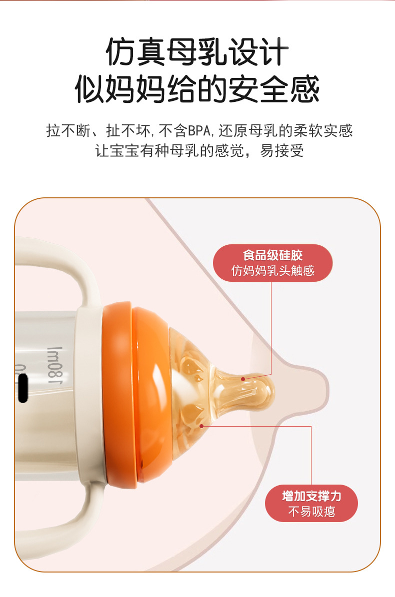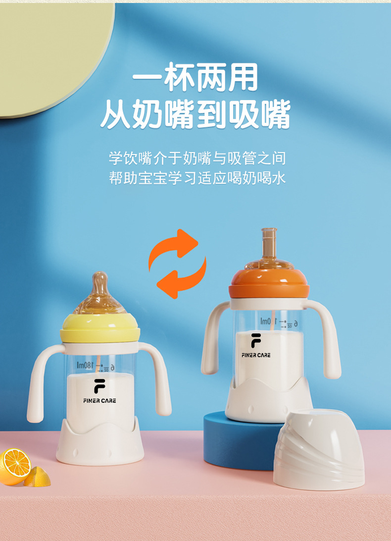 Baby glass feeding bottle newborn wide caliber nipple with straw silicone drop resistant cover baby feeding and weaning artifact
