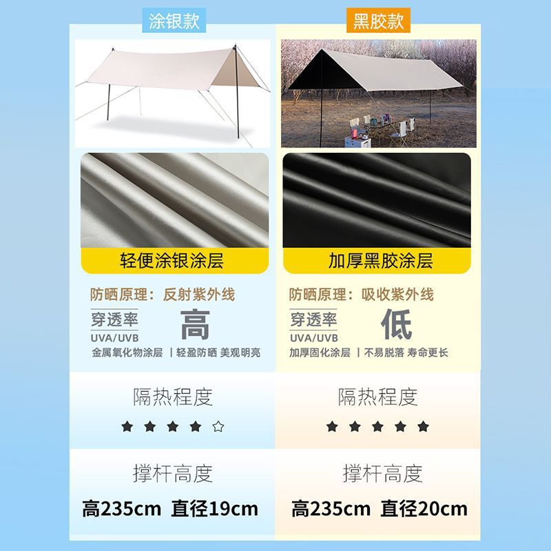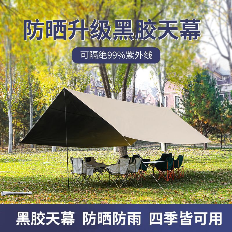Black Rubber Canopy Tent Outdoor Camping Sunshade Outdoor Canopy Thickened Sunscreen Coated Camping Rainproof Awning