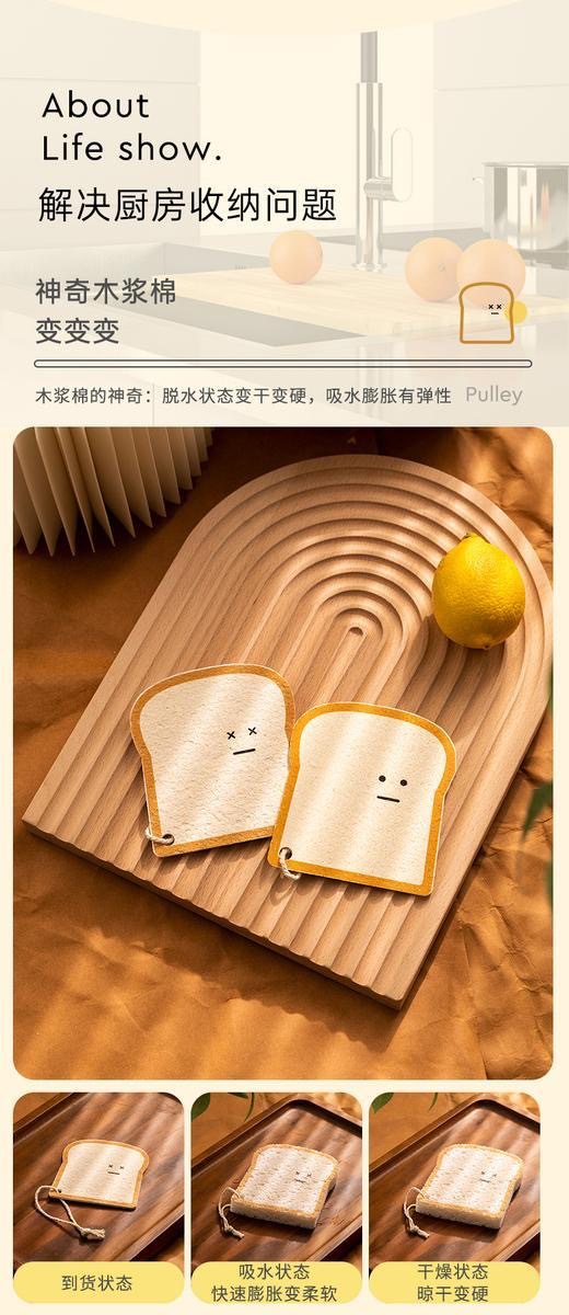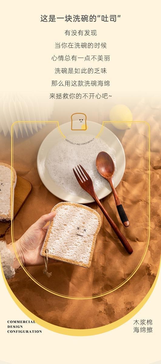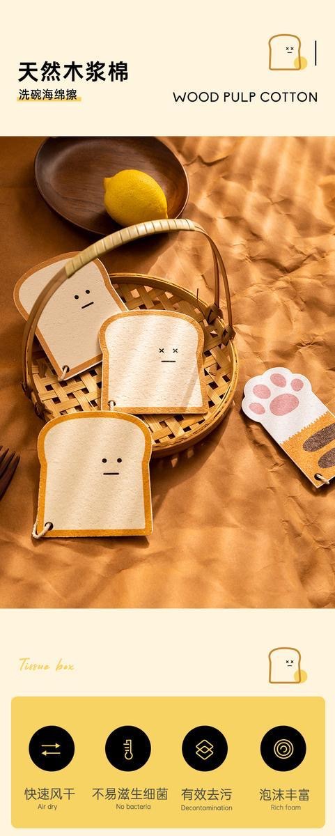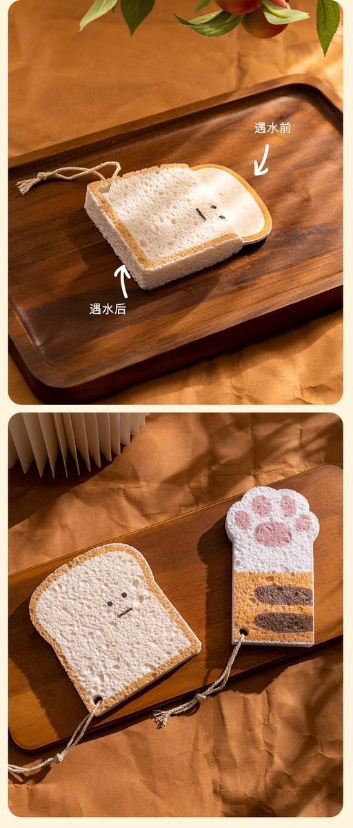 Cute creative toast cat claw dishwashing cloth kitchen dishwashing artifact wood pulp sponge dish cloth Wood cotton pulp sponge