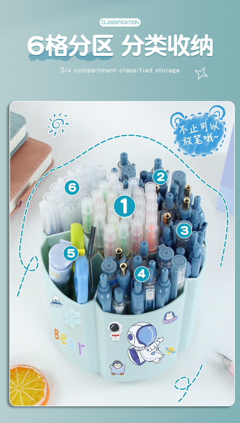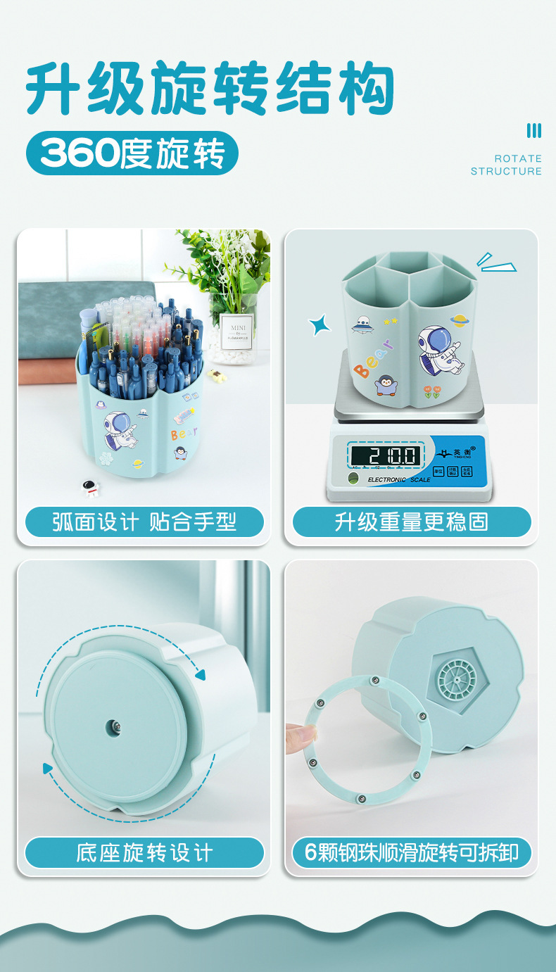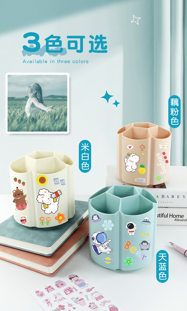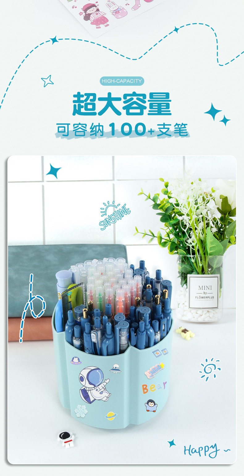 Degree rotating pen holder children Boys Girls students office desktop desk stationery storage box large capacity