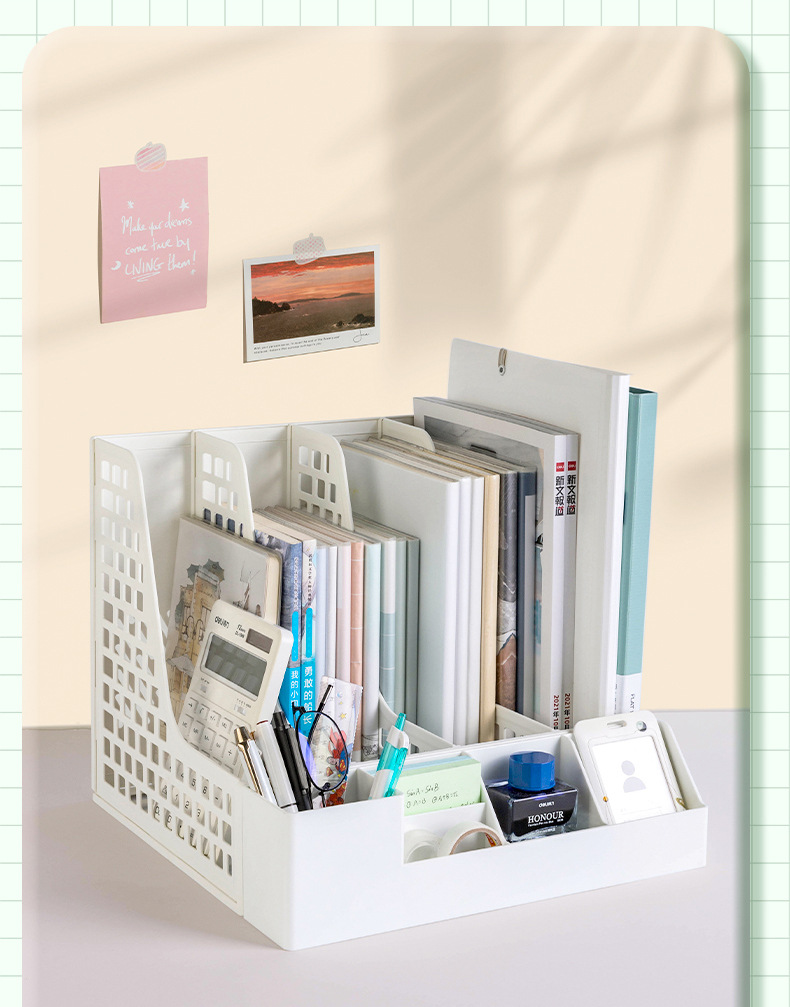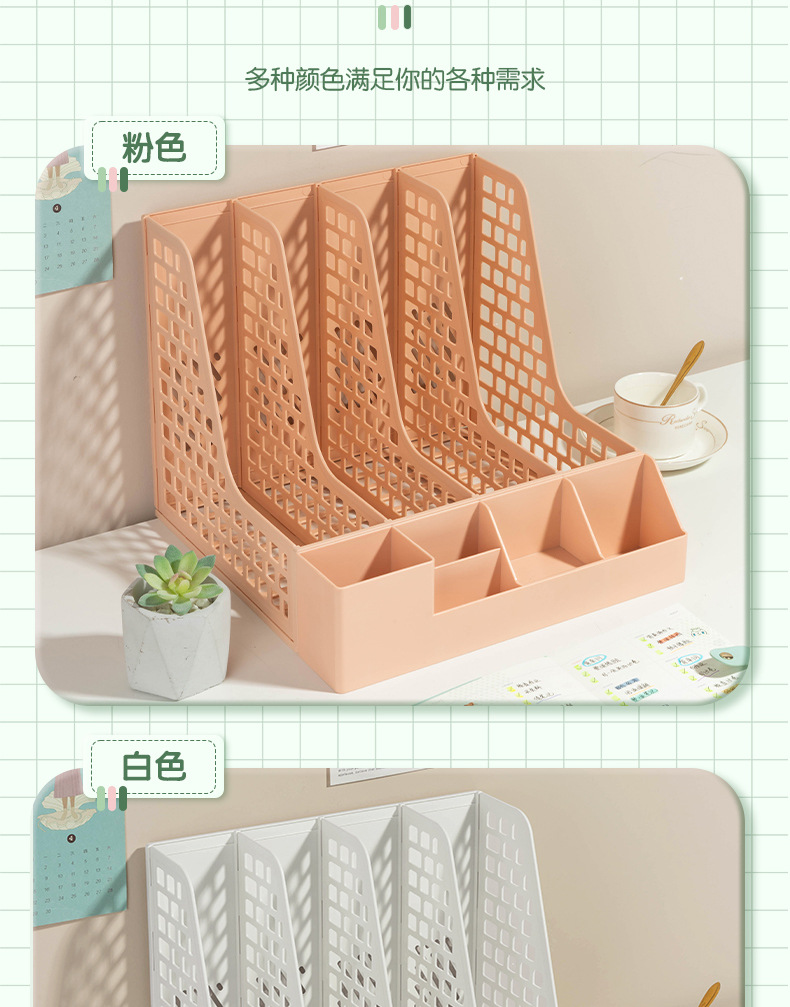 Deli File Frame File Shelf Plastic Desktop Storage Box Office Data Filing Rack Simple Folder Bookshelf