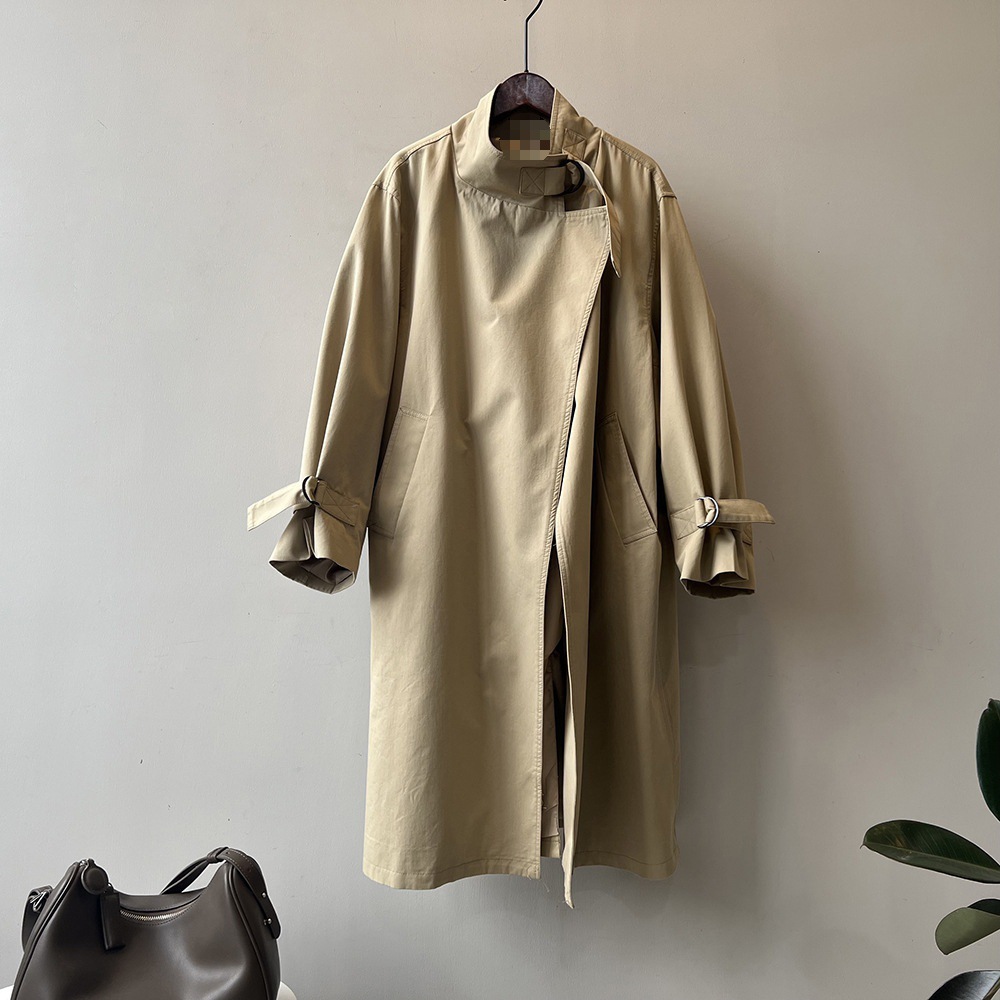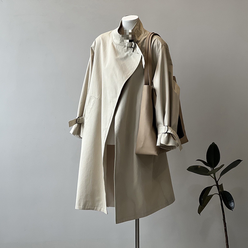 Khaki Trenchcoat Women's Spring and Autumn Mid-length Loose Retro British Style Casual Collar Coat for Petite