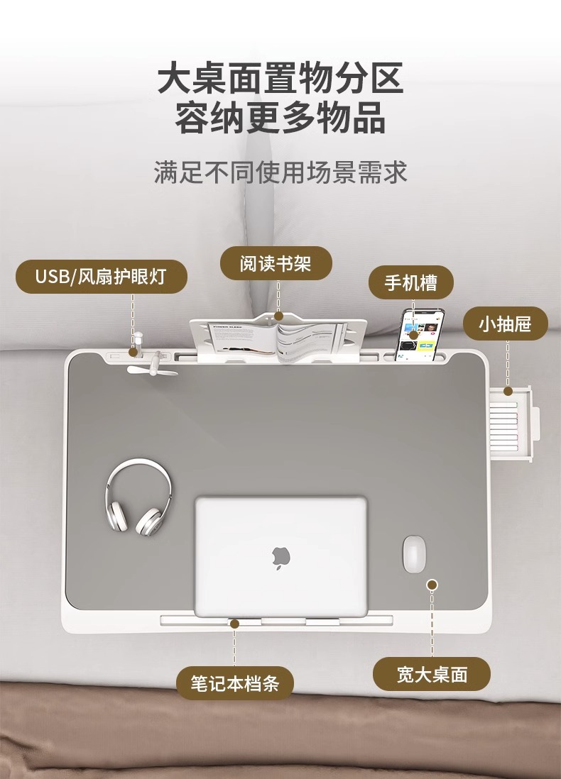 - Desktop Plus size [misty gray flagship] card slot + drawer + bookshelf + non-slip support + USB (send Fan + Light)