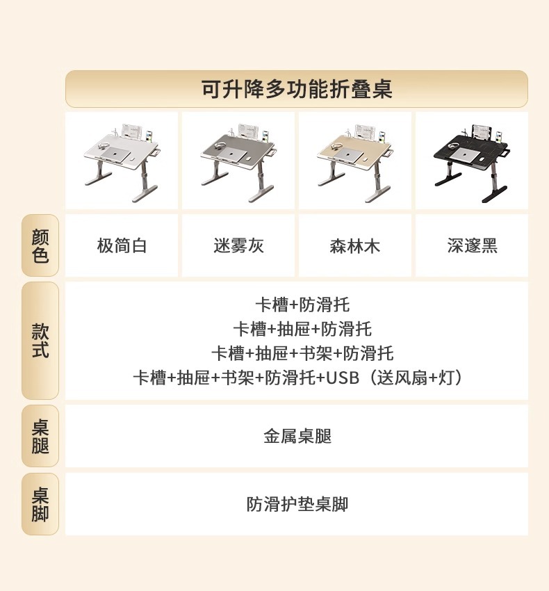 - Sunset Gray + card slot + fan + drawer + non-slip support [flagship] + bookshelf + USB charging