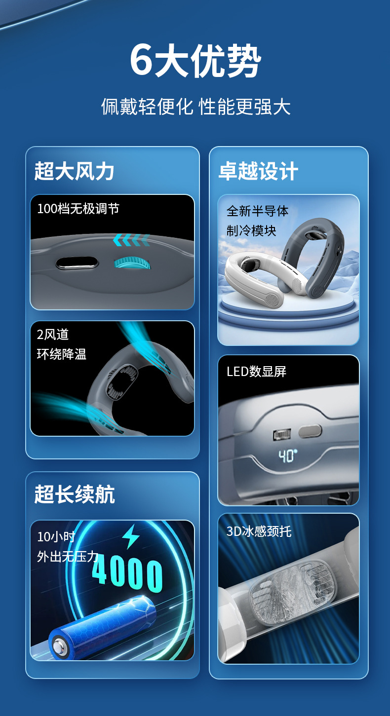 Mini neck hanging fan violent USB long battery life charging cool cold fan advertising promotion small home appliance gifts