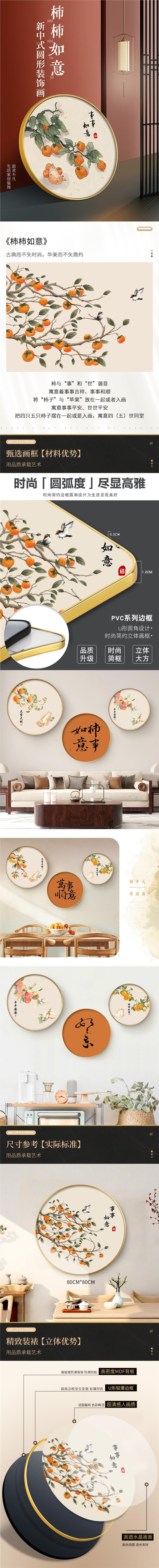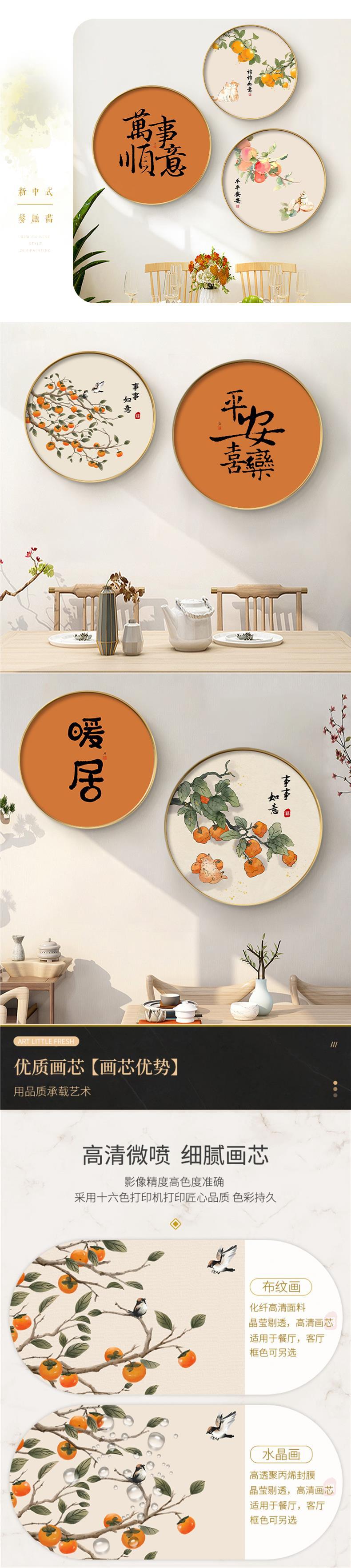 New Chinese restaurant decorative painting dining room wall mural living room sofa background wall hanging painting round Persimmon Ruyi painting