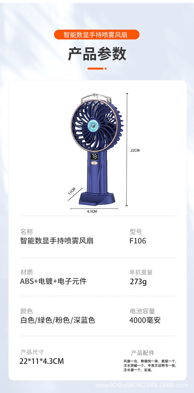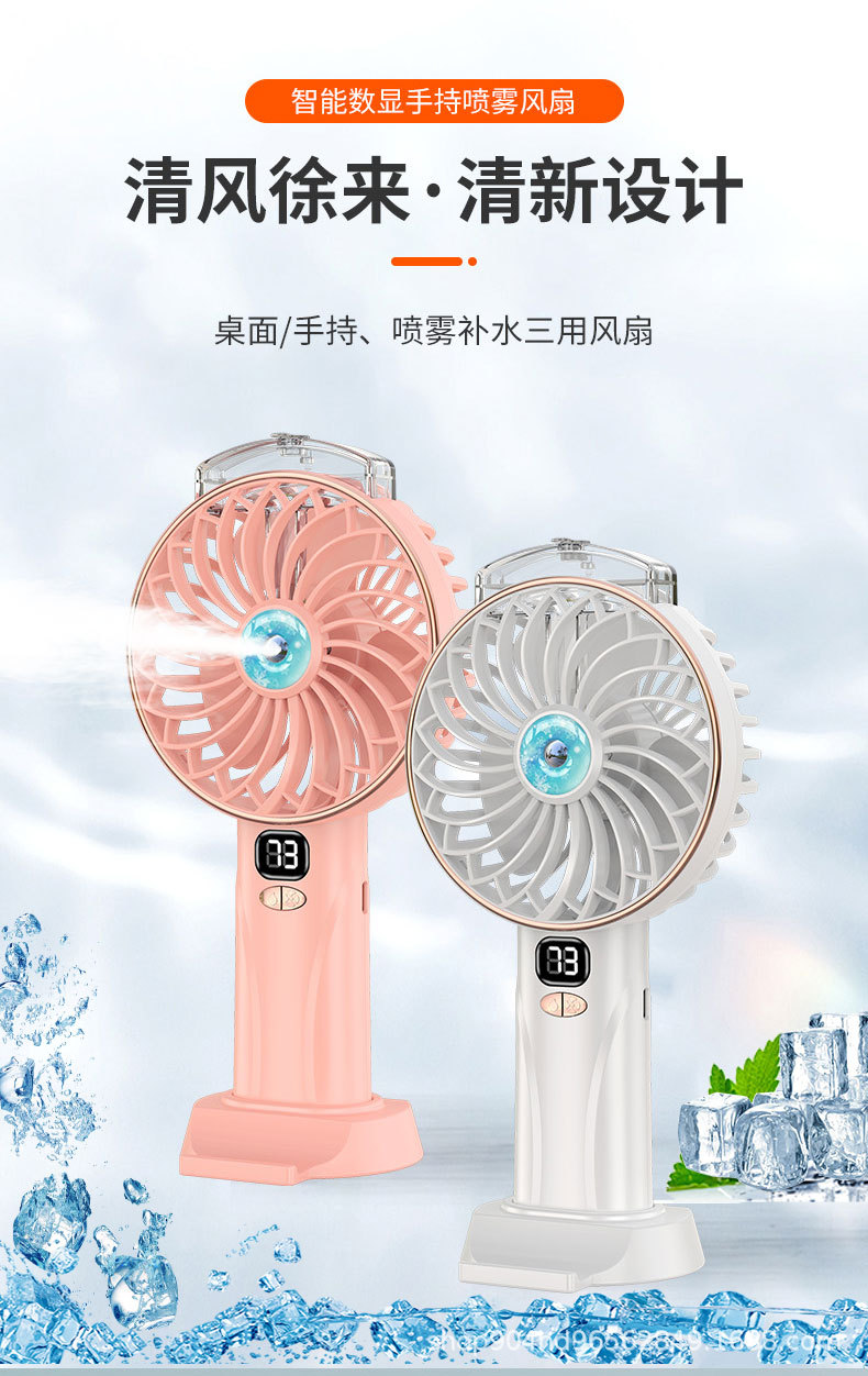 New Handheld mini spray small fan desktop outdoor portable with digital display air cooler cross border wholesale