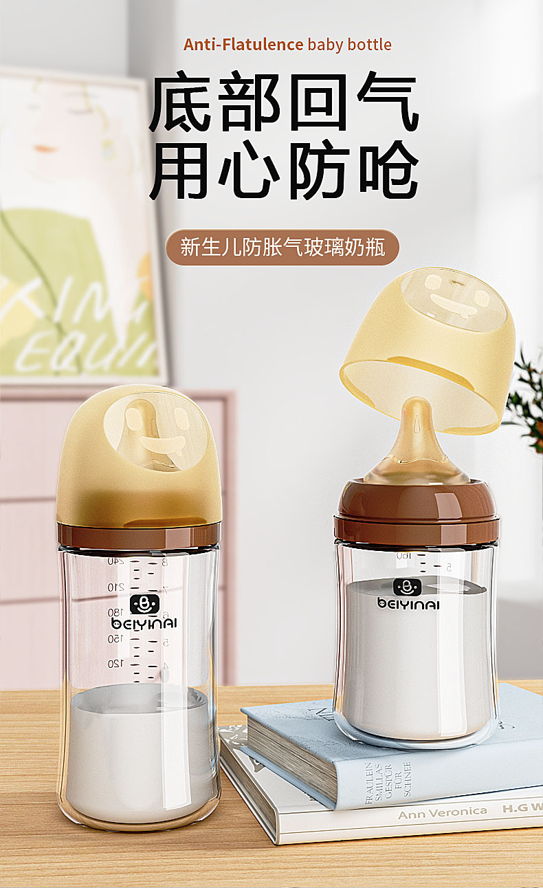 Newborn baby glass bottle wide caliber anti flatulence silicone nipple baby baby products manufacturers wholesale cross border