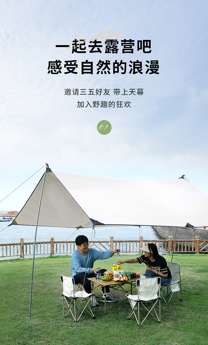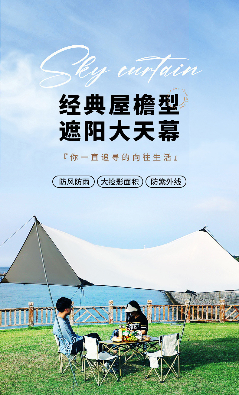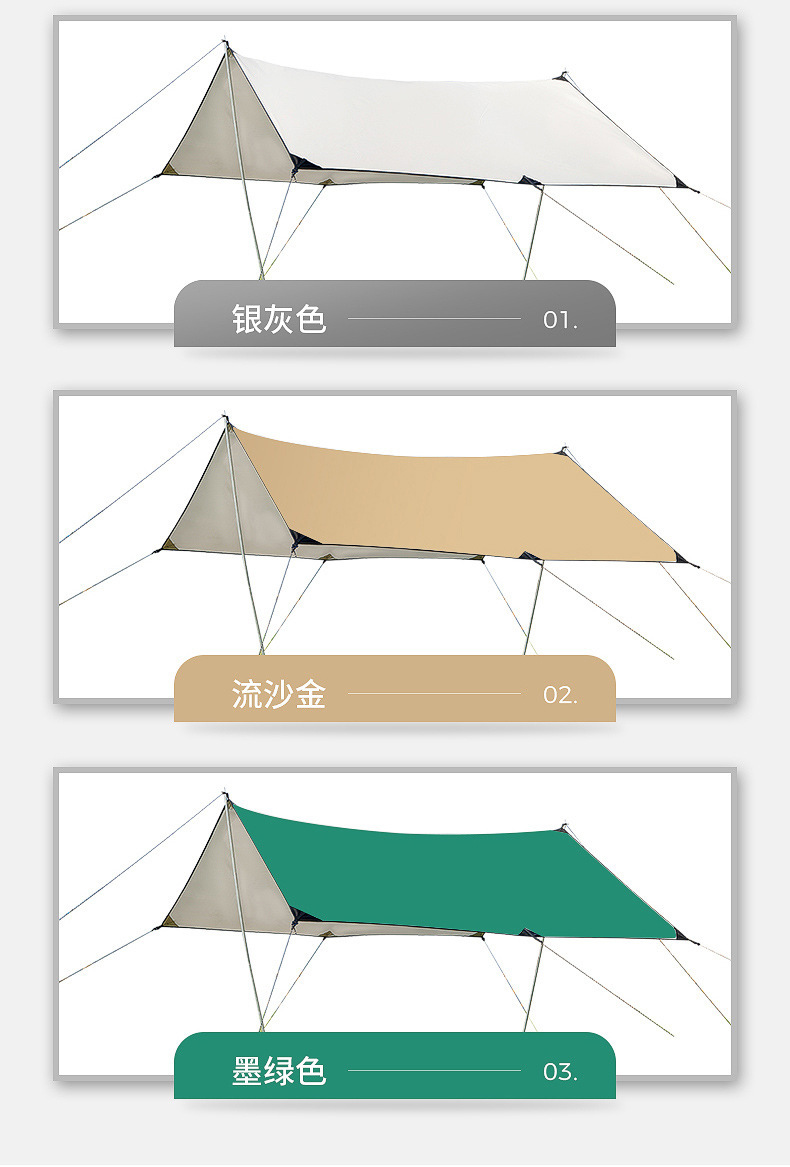 Outdoor Black Glue Canopy Camping Sunshade Canopy Thickened Silver Canopy Camping Rainproof Sunscreen Canopy
