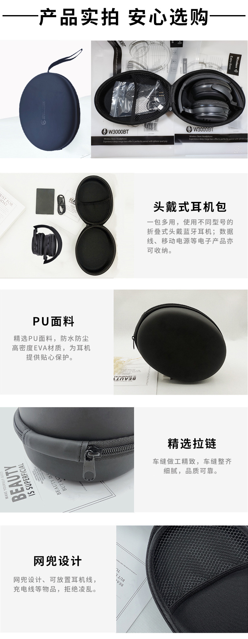 Portable hard case EVA storage box Bluetooth headset universal storage bag containing net pocket portable belt one-piece delivery