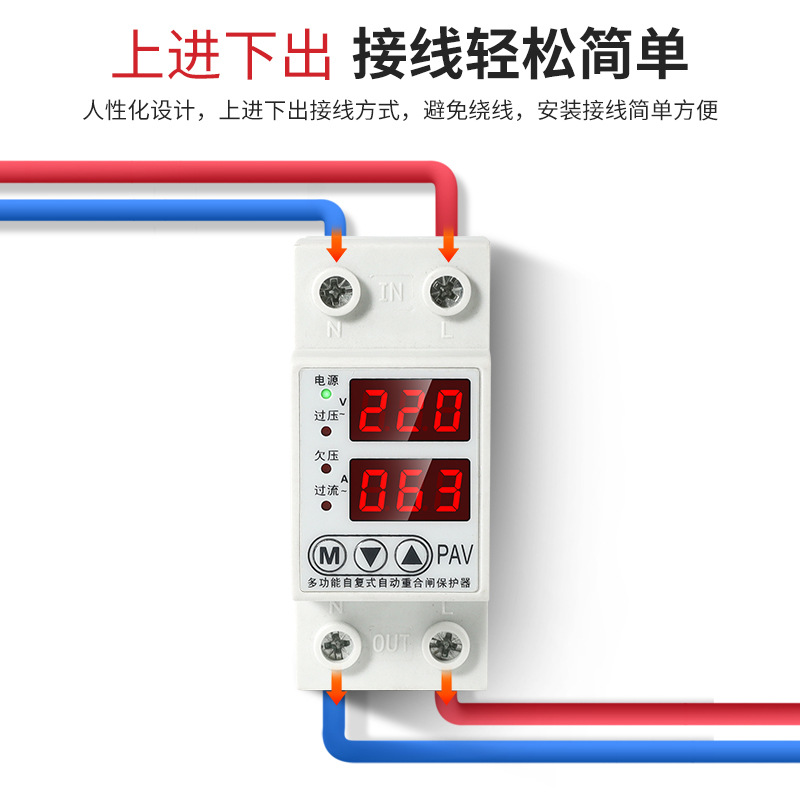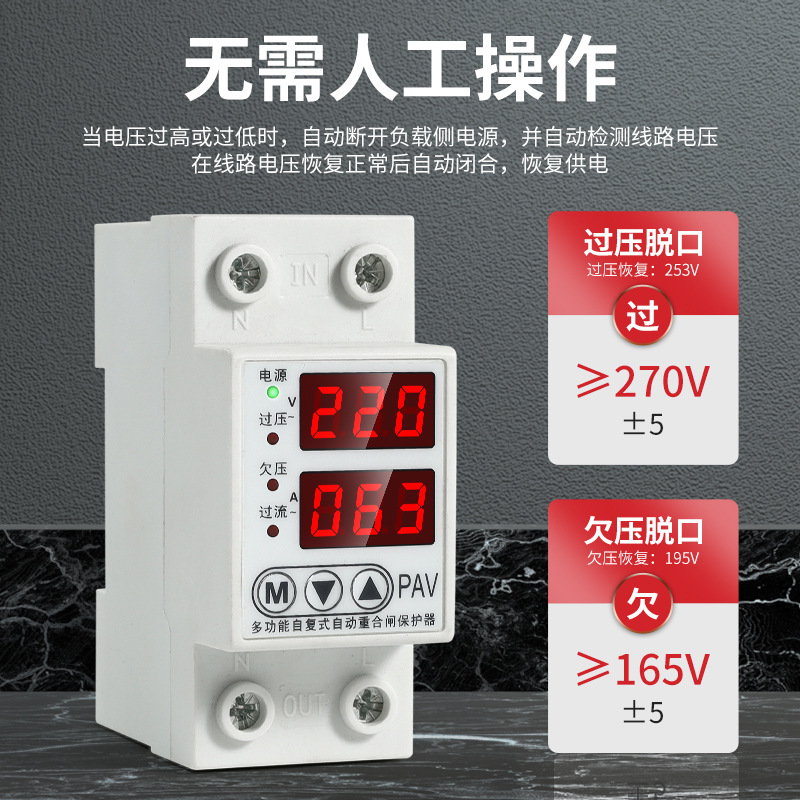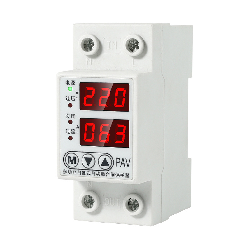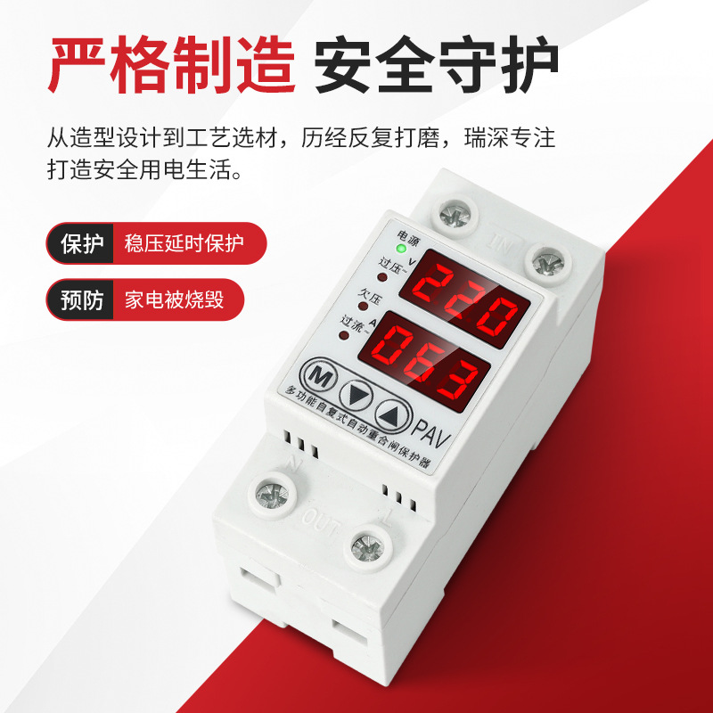 Ruishen dual display adjustable multi function over voltage limit current protector over voltage over voltage delay reset protector
