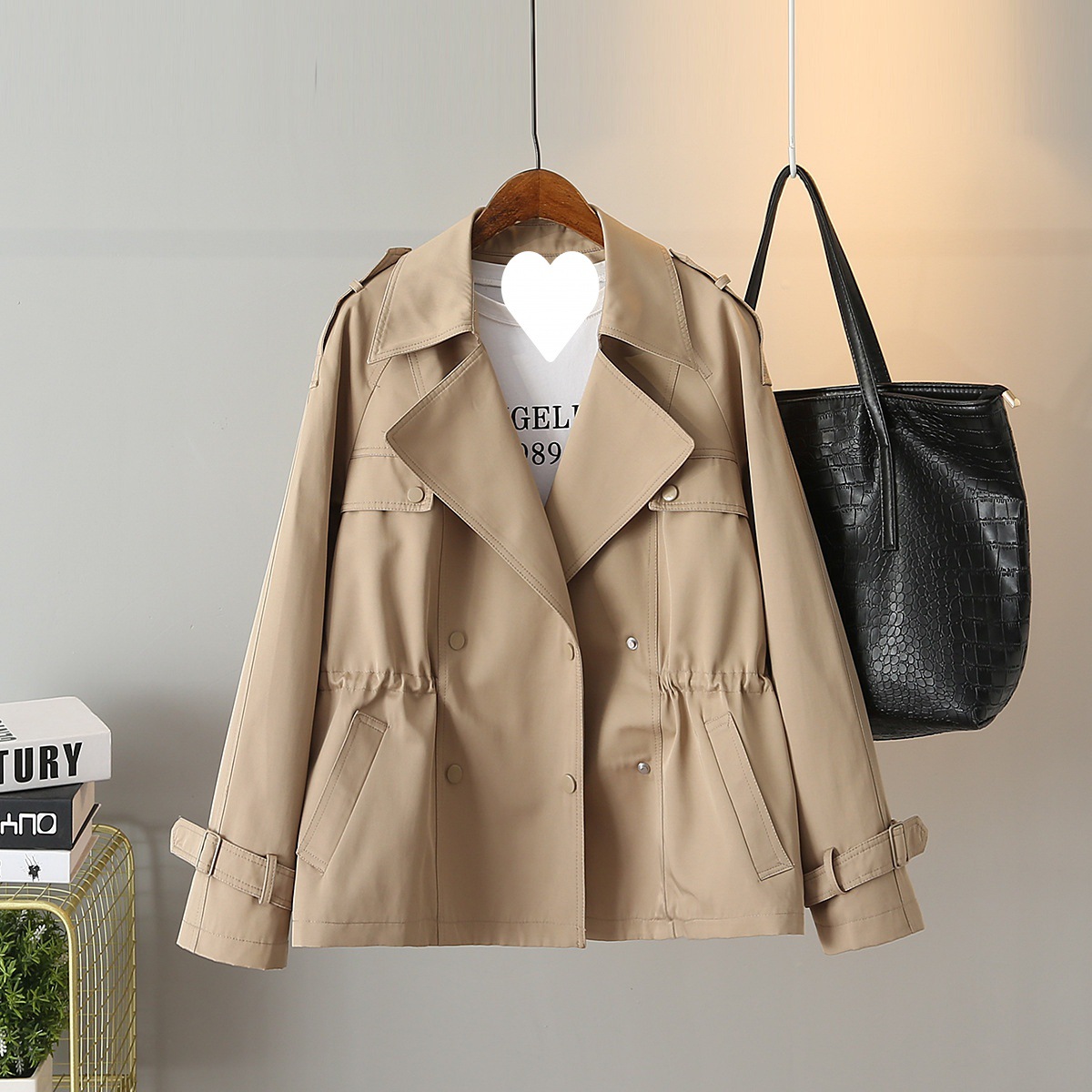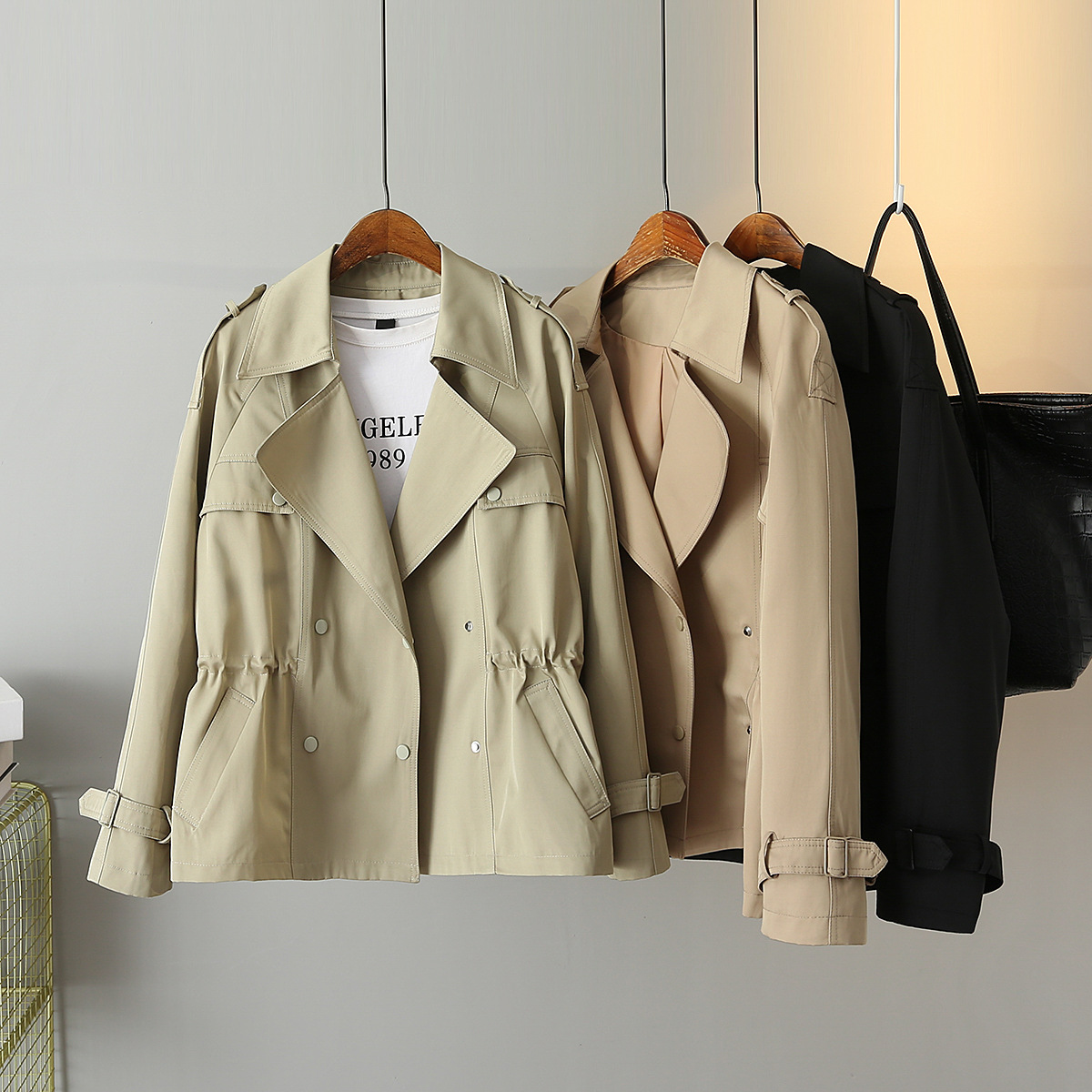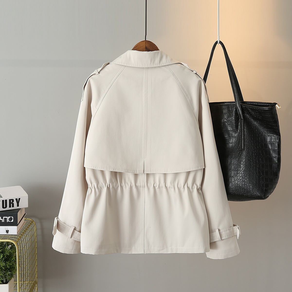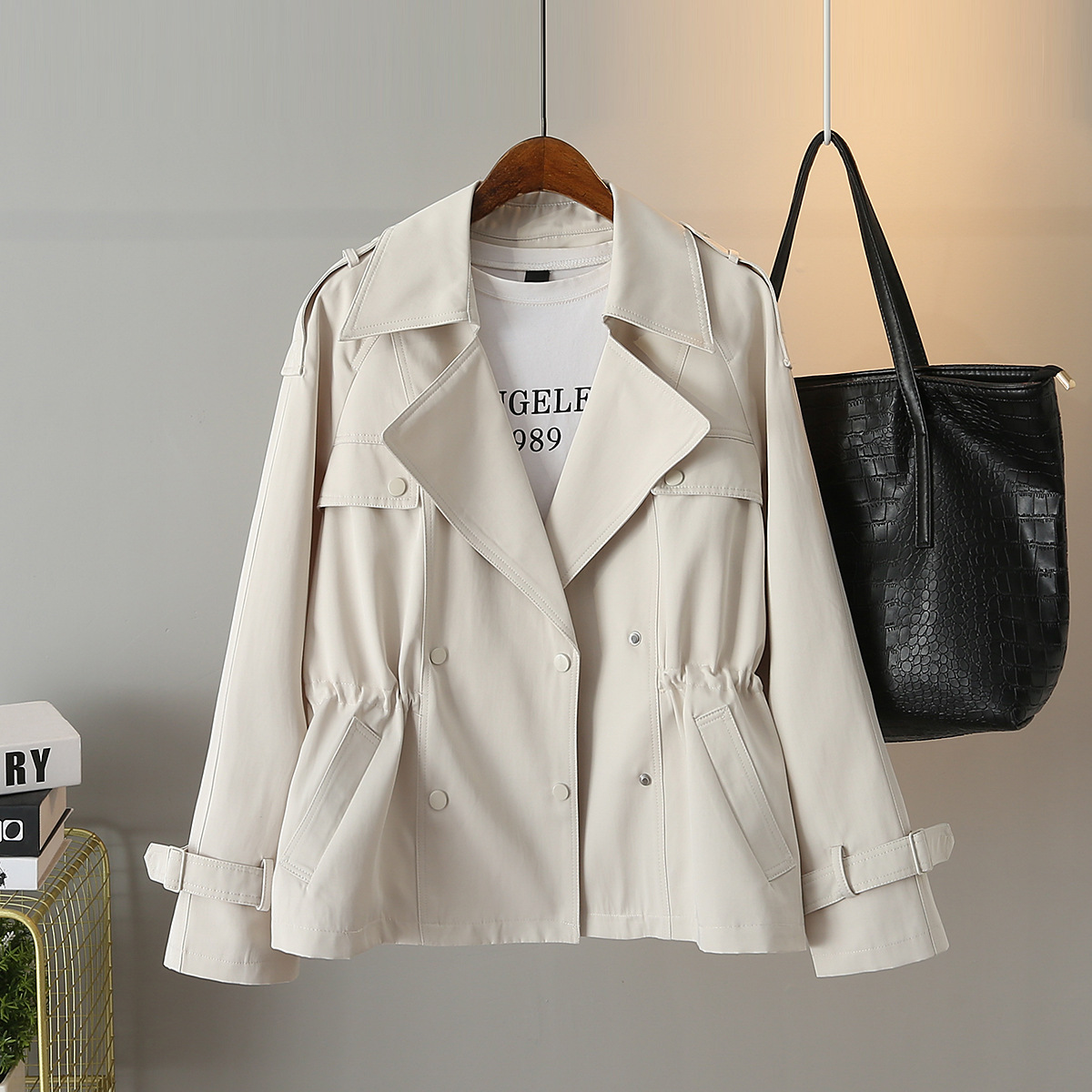 Short small trench coat for women 2024 spring new Korean style drawstring waist slimming double breasted coat fashion