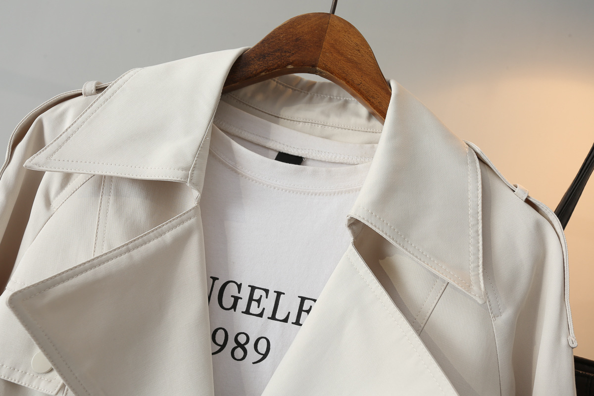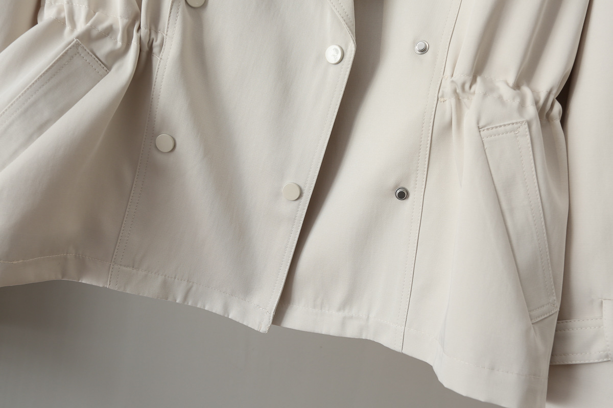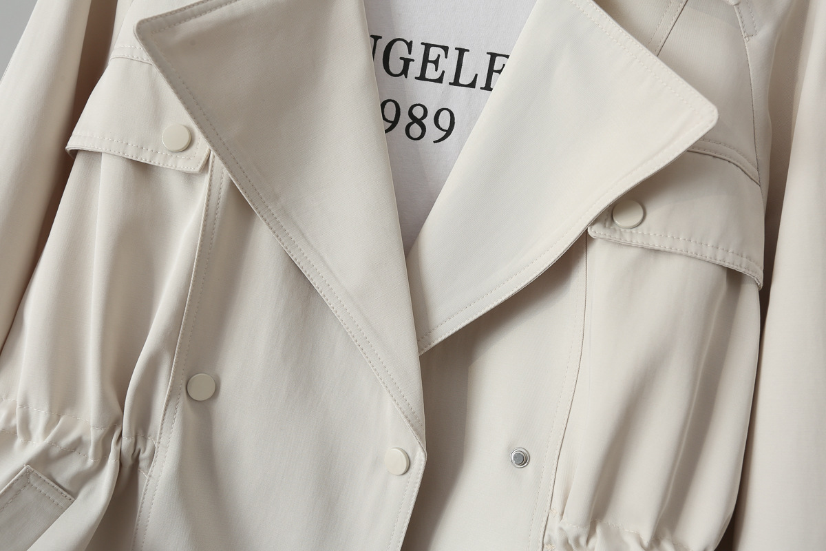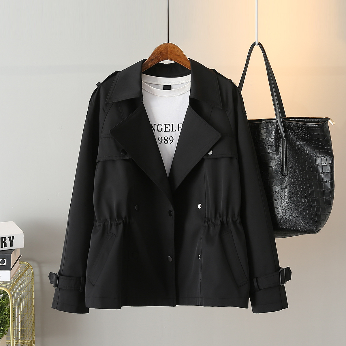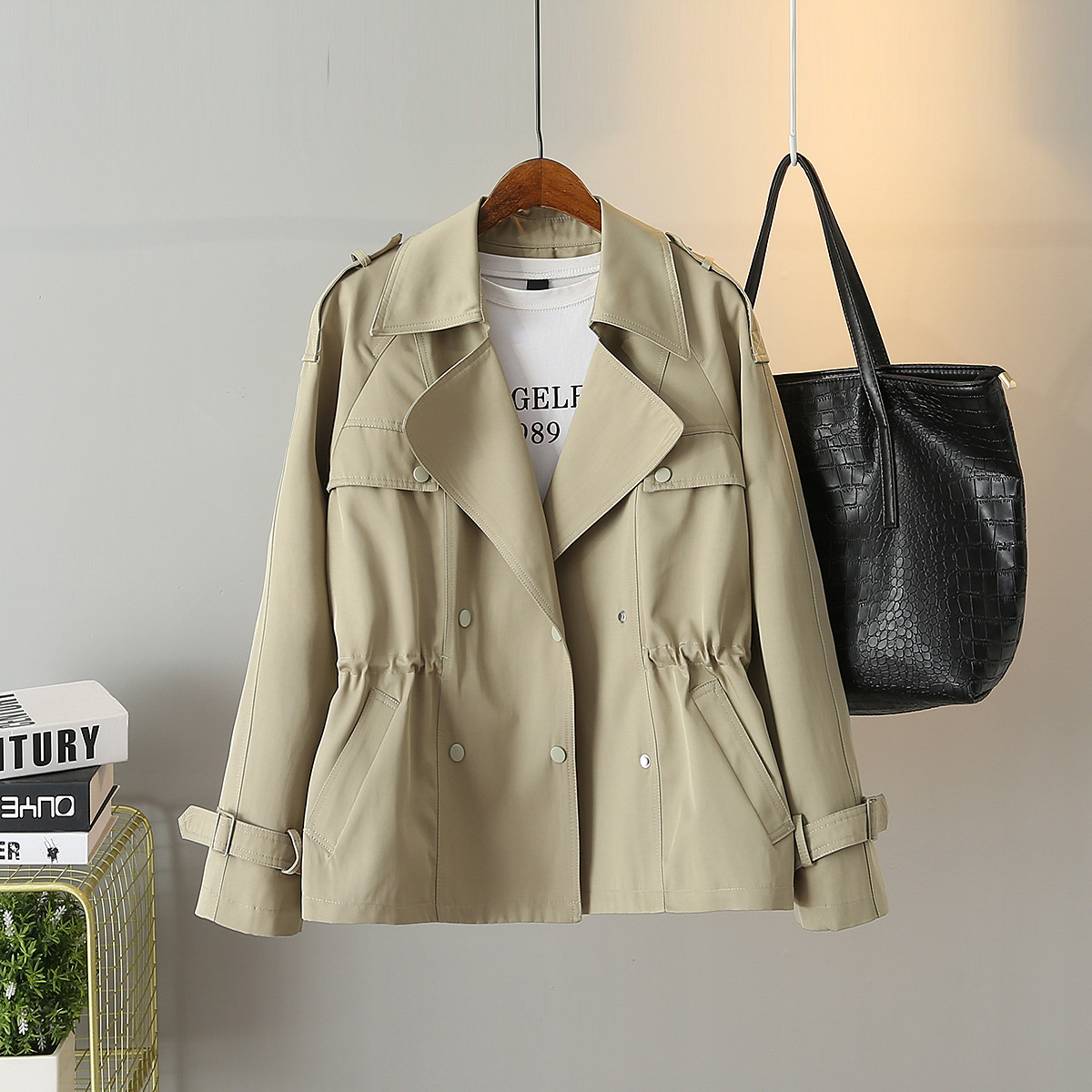Short small trench coat for women 2024 spring new Korean style drawstring waist slimming double breasted coat fashion