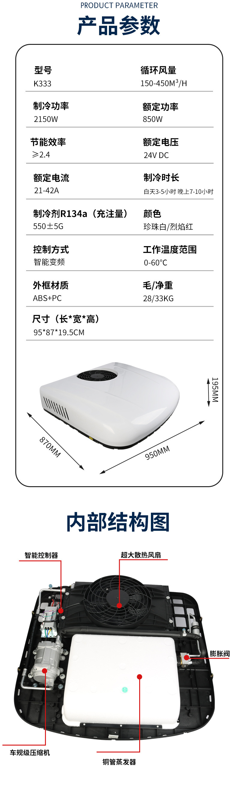Truck Parking air conditioner 24V fast refrigeration light card top mounted RV car car all in one machine