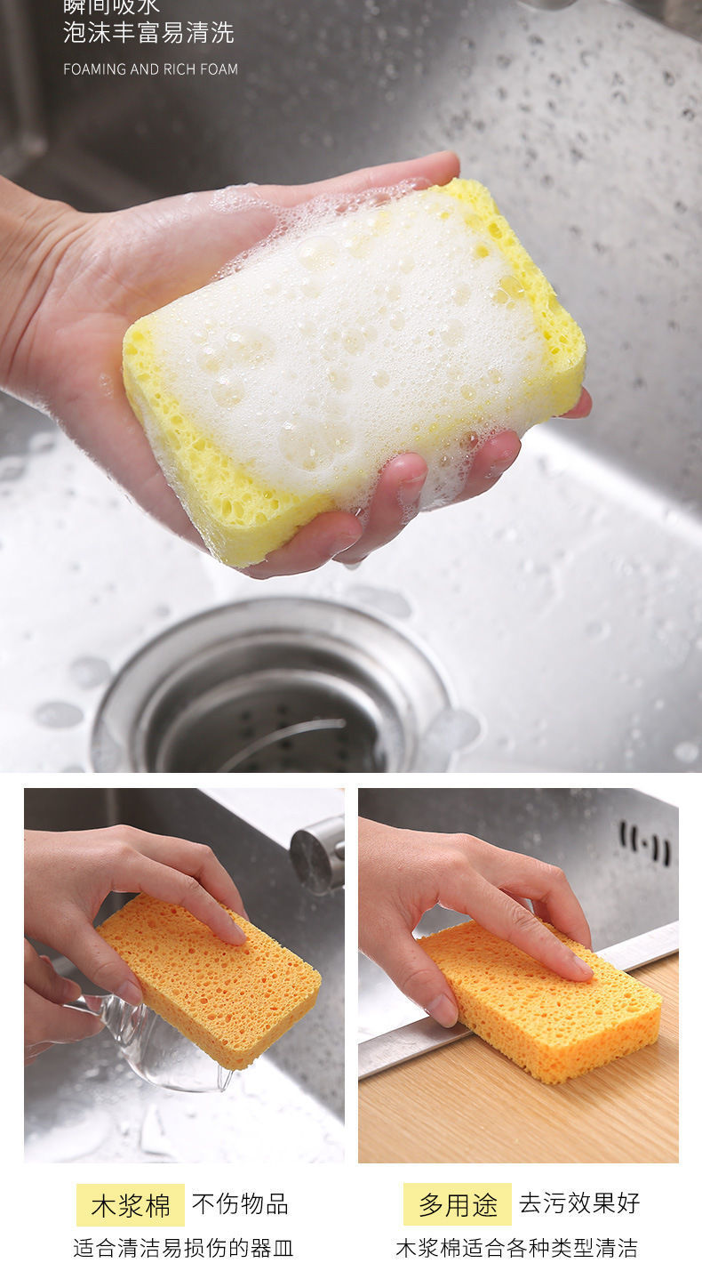 Wood pulp sponge dish cotton thickened non-stick oil scouring pad brush pot cleaning artifact cleaning rag sponge brush