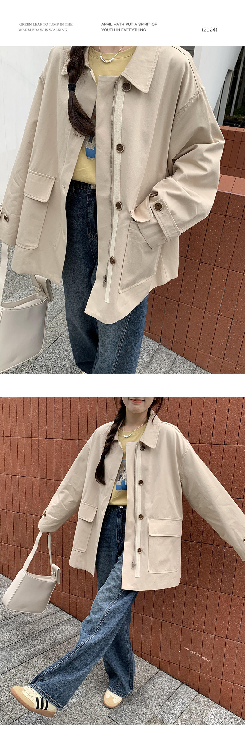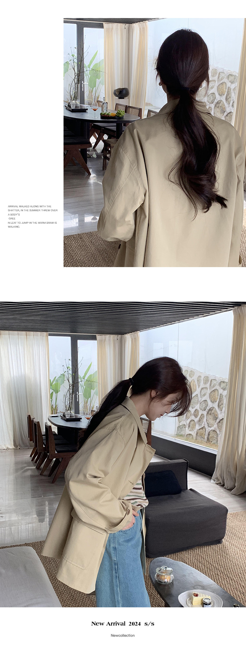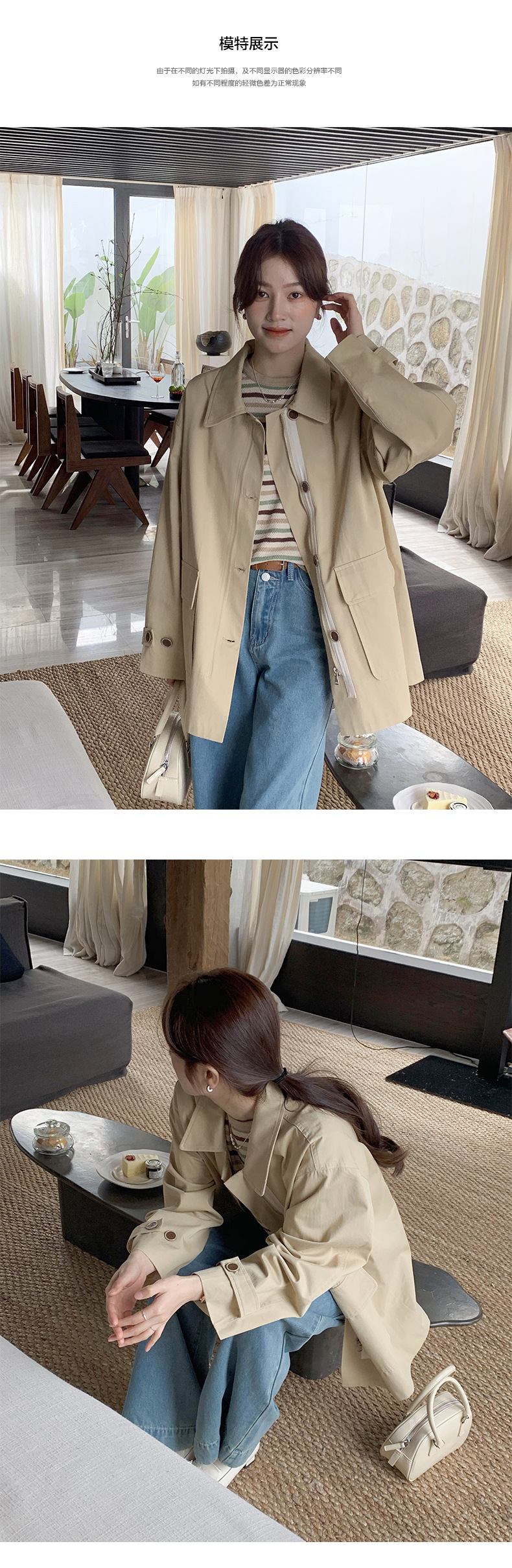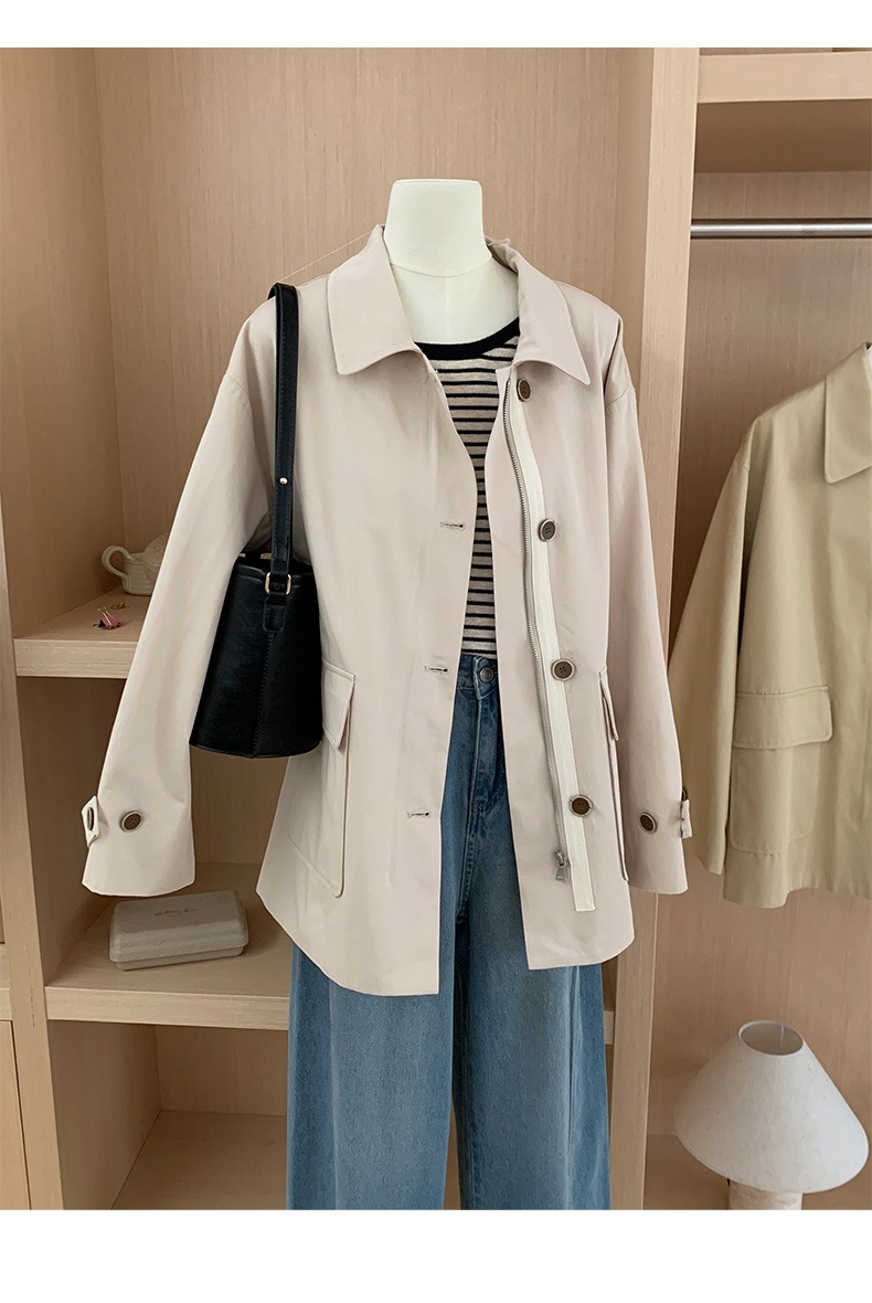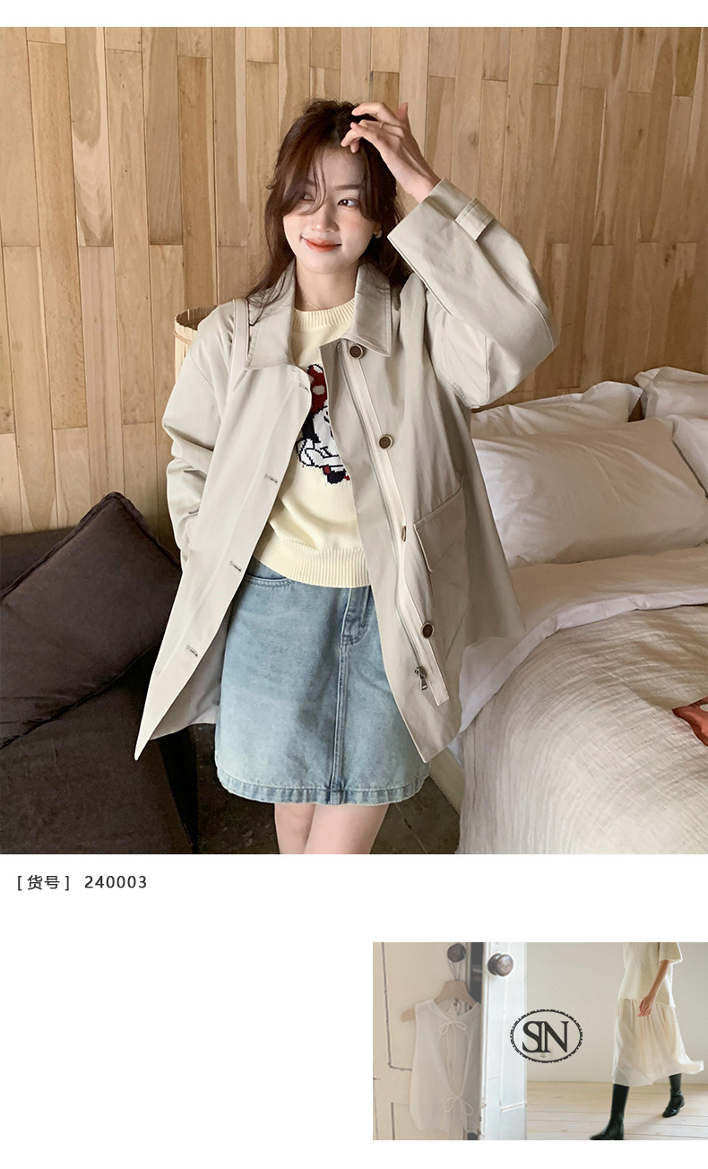 from anna retro trench coat 2024 spring new Korean style Maillard small design top