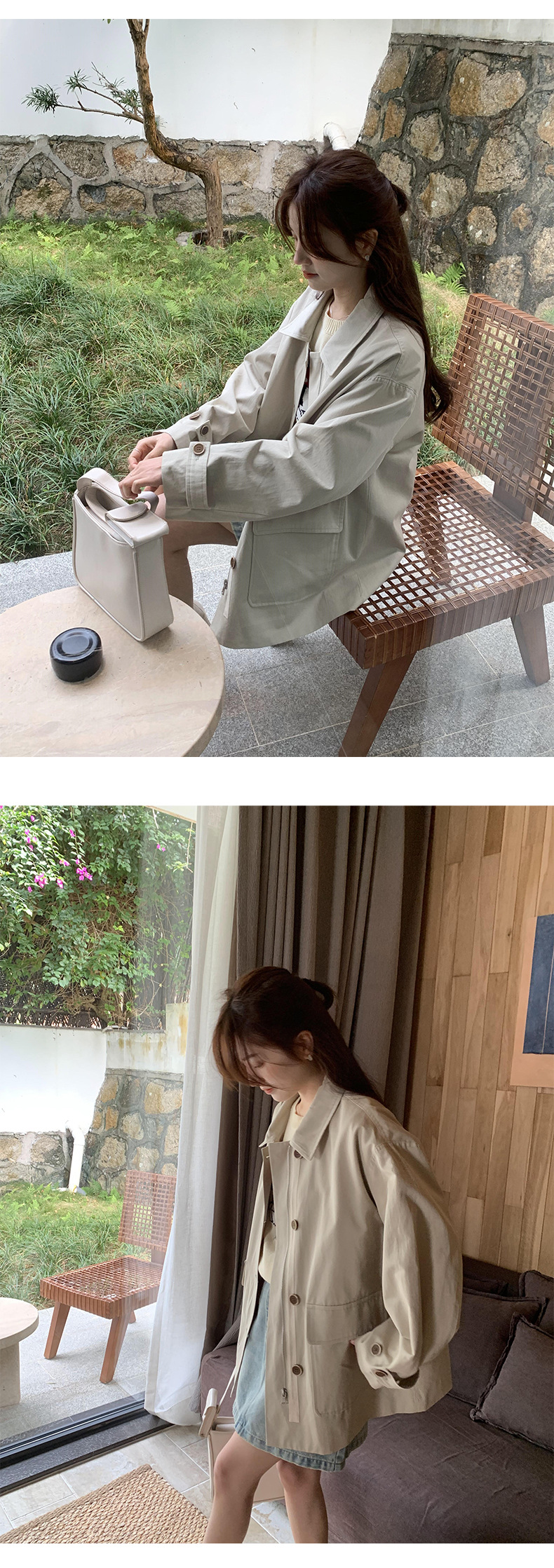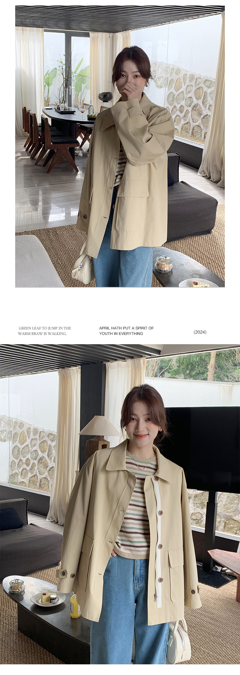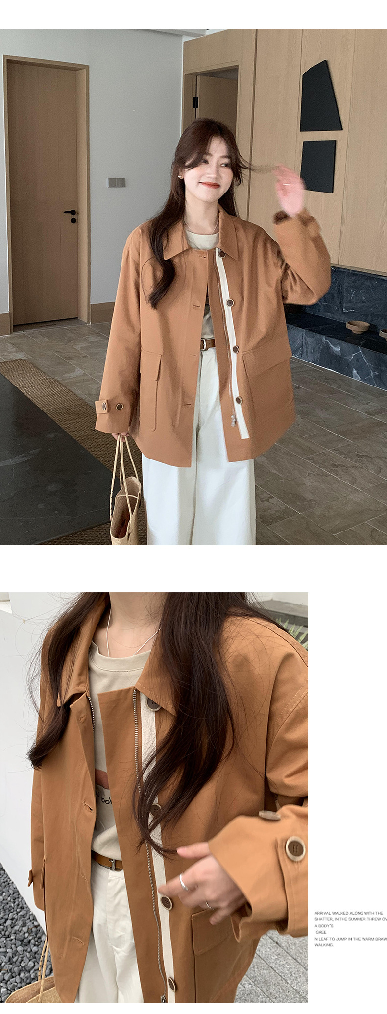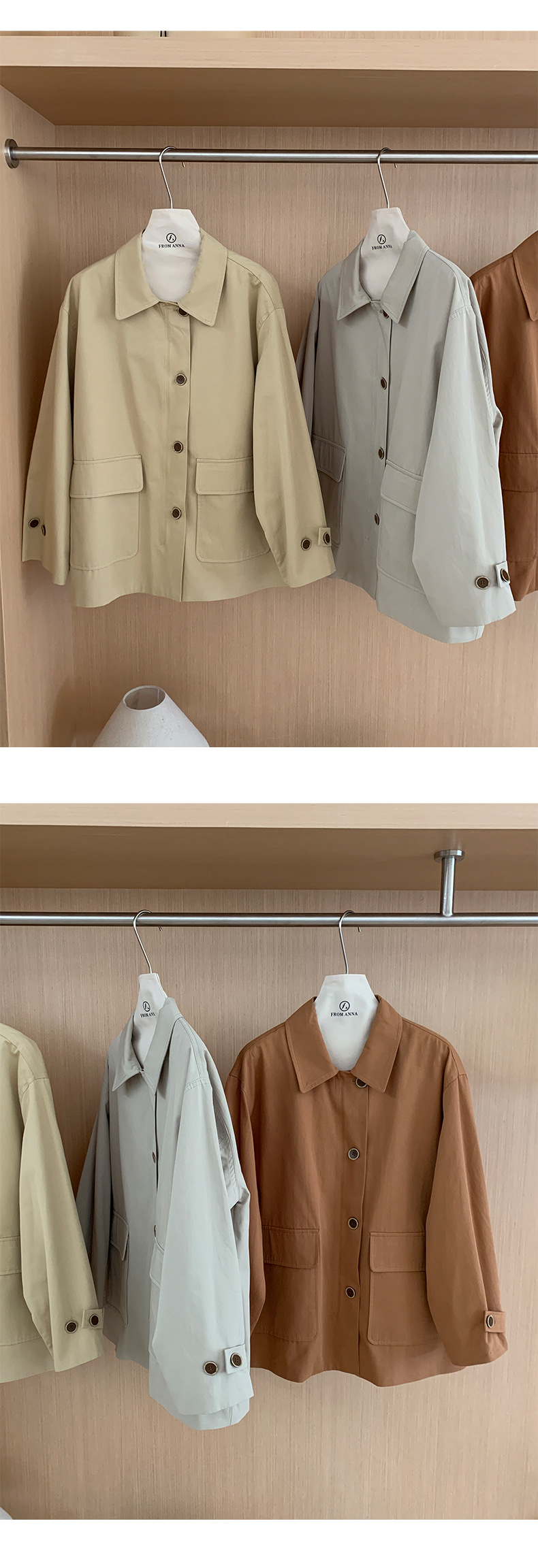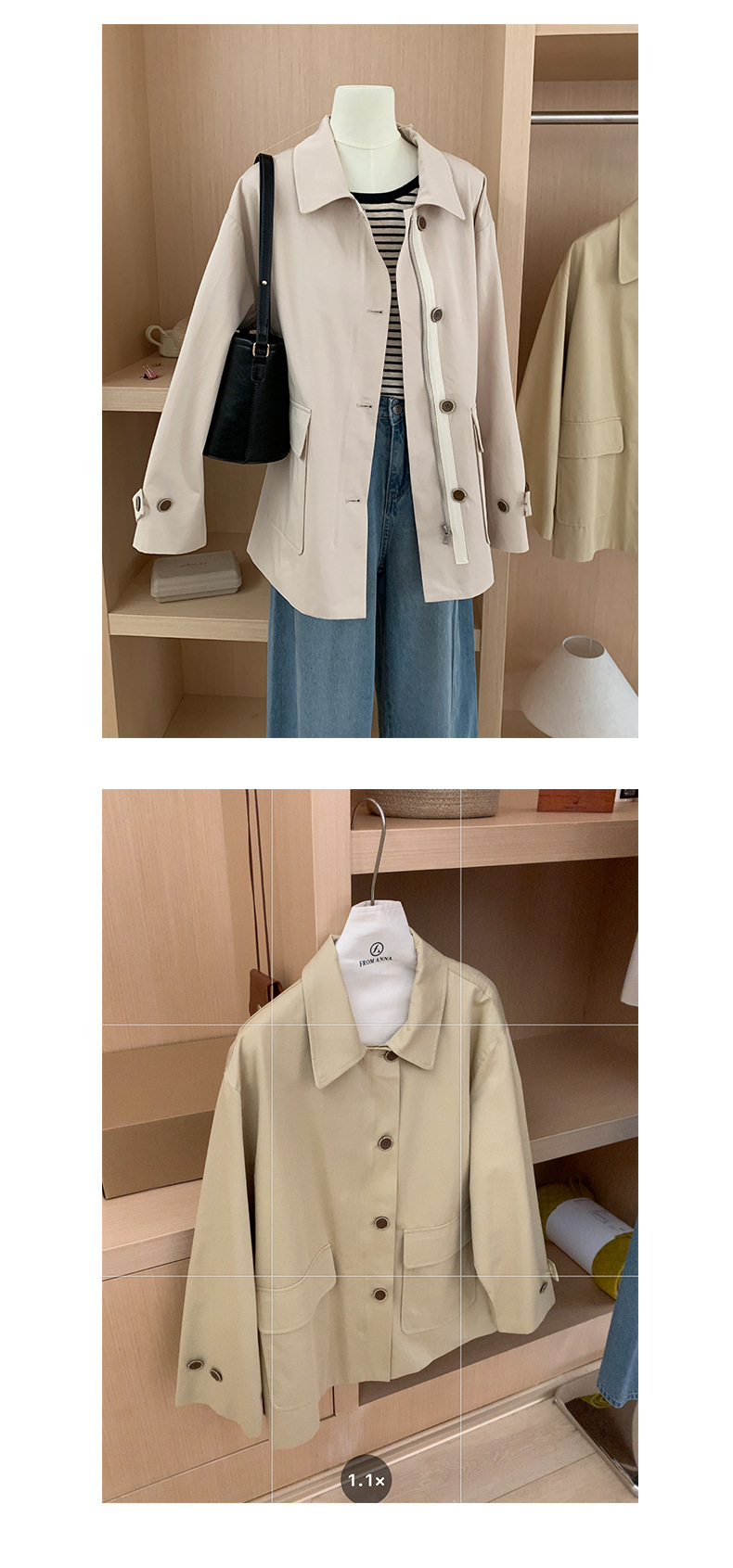 from anna retro trench coat 2024 spring new Korean style Maillard small design top