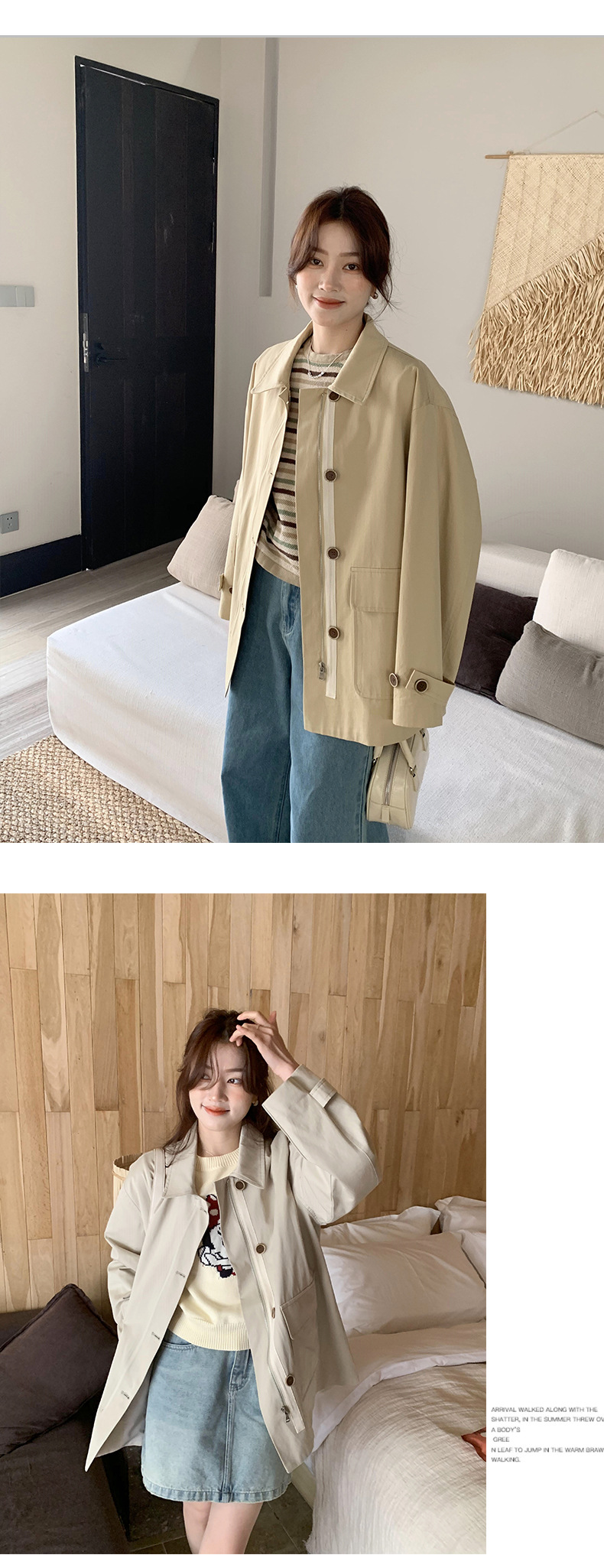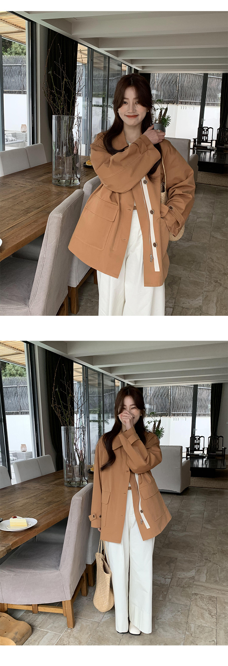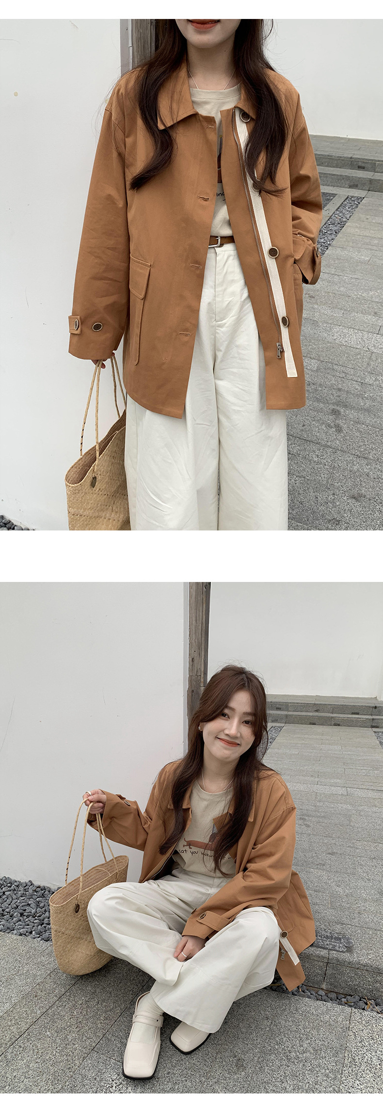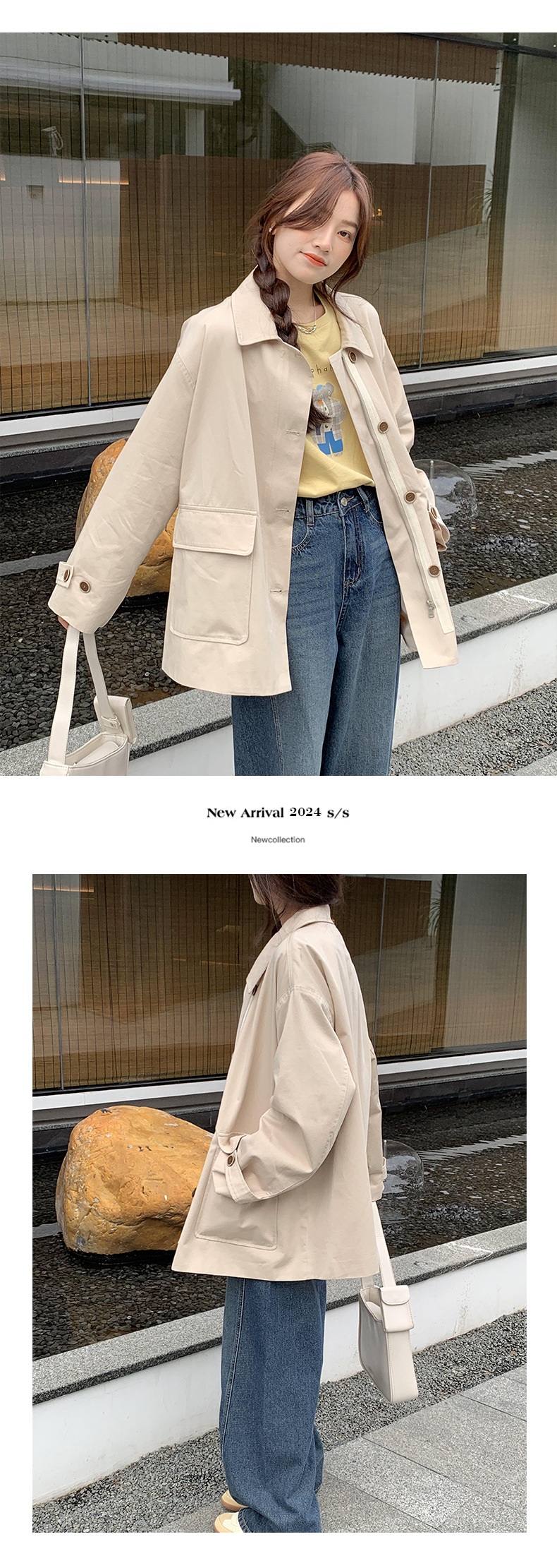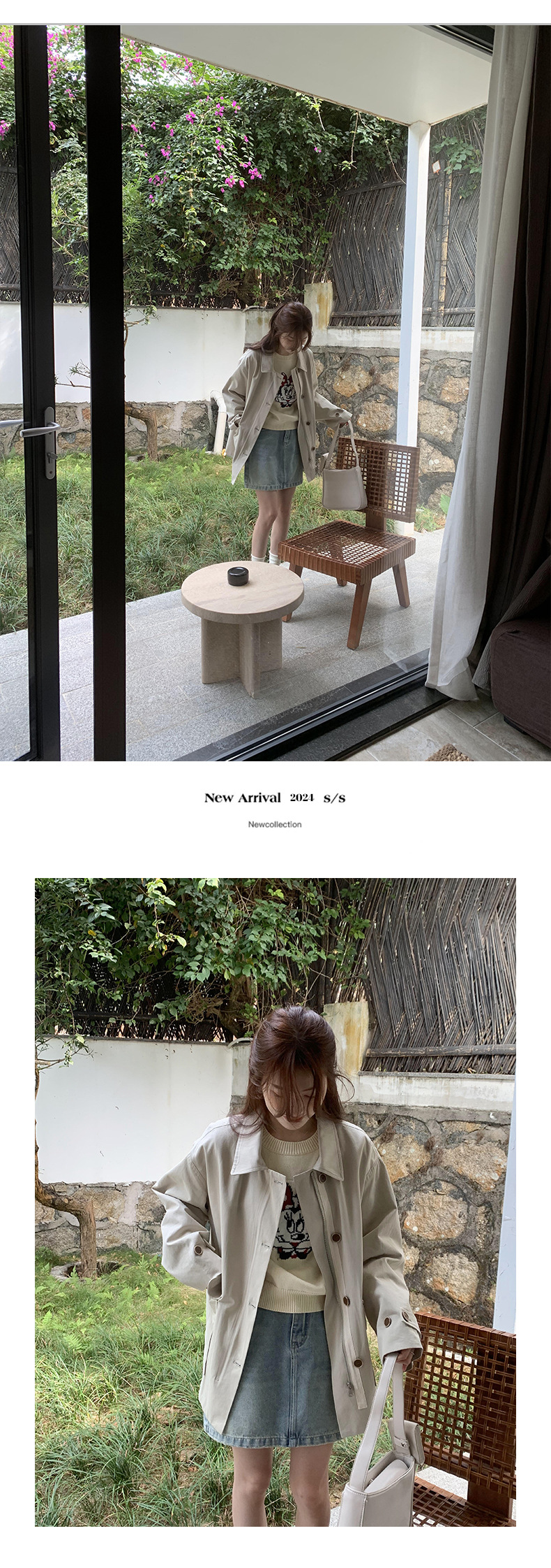 from anna retro trench coat 2024 spring new Korean style Maillard small design top