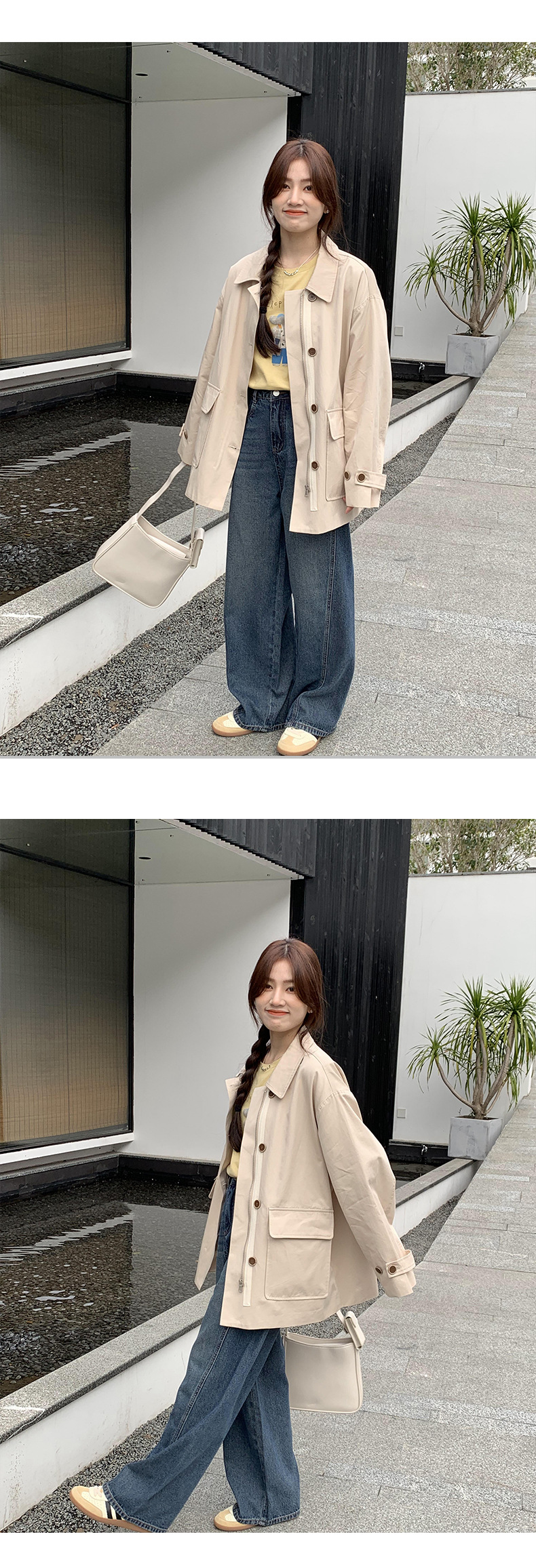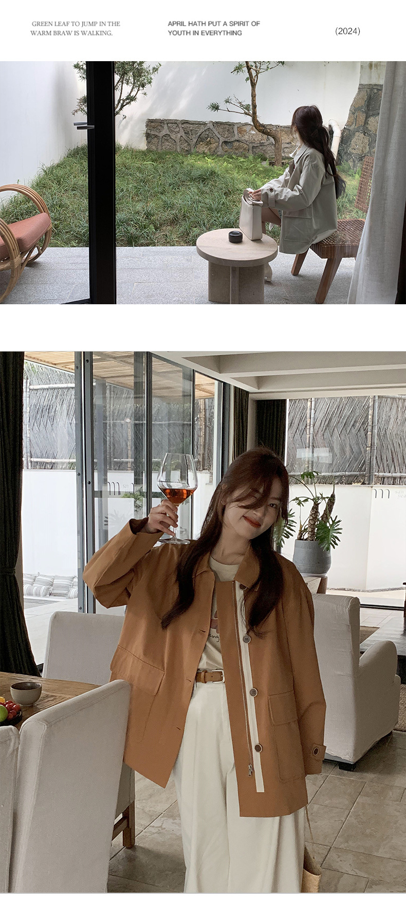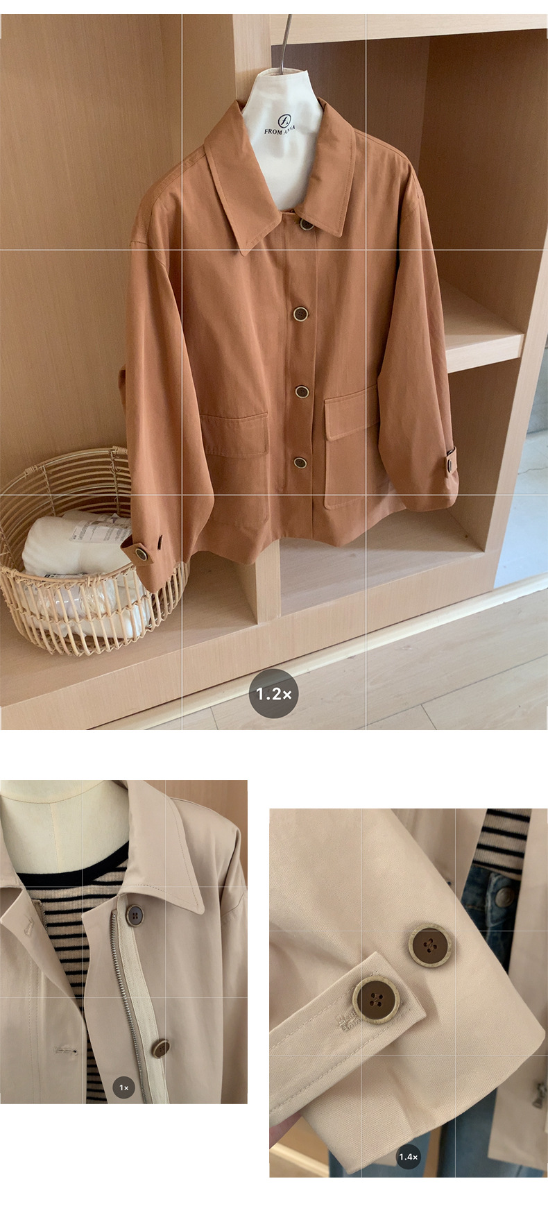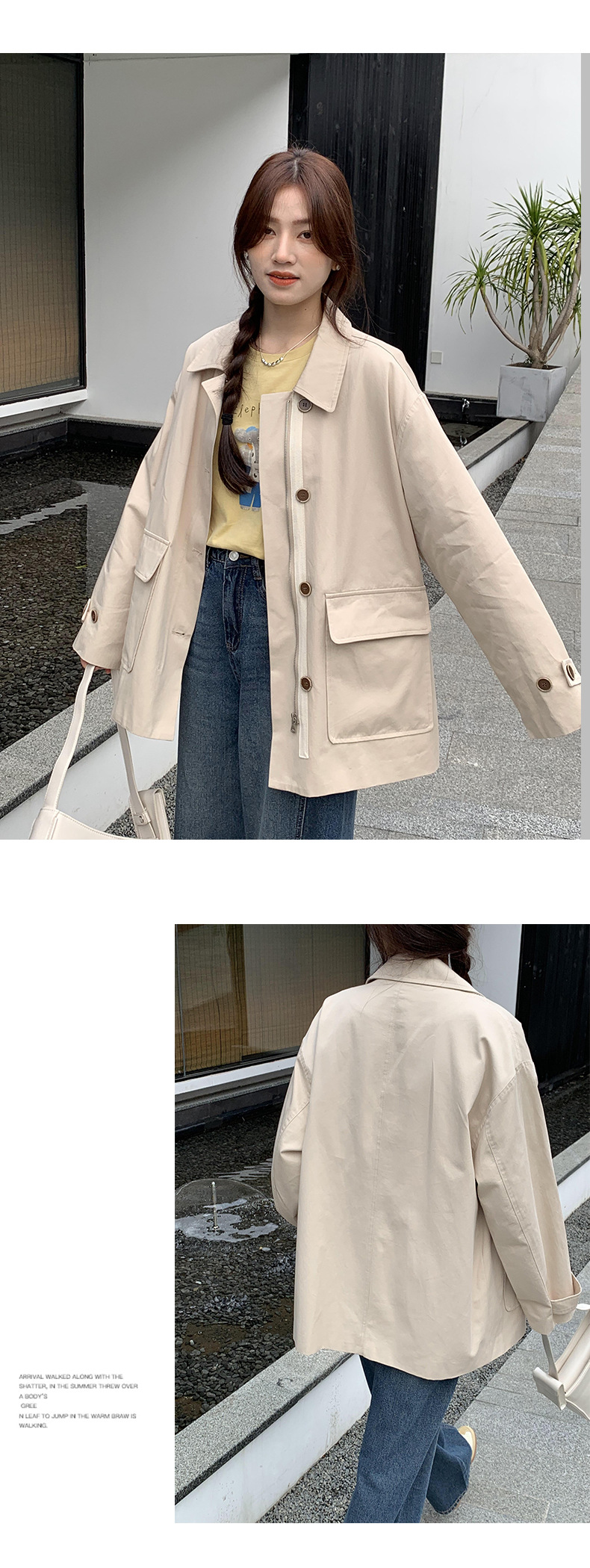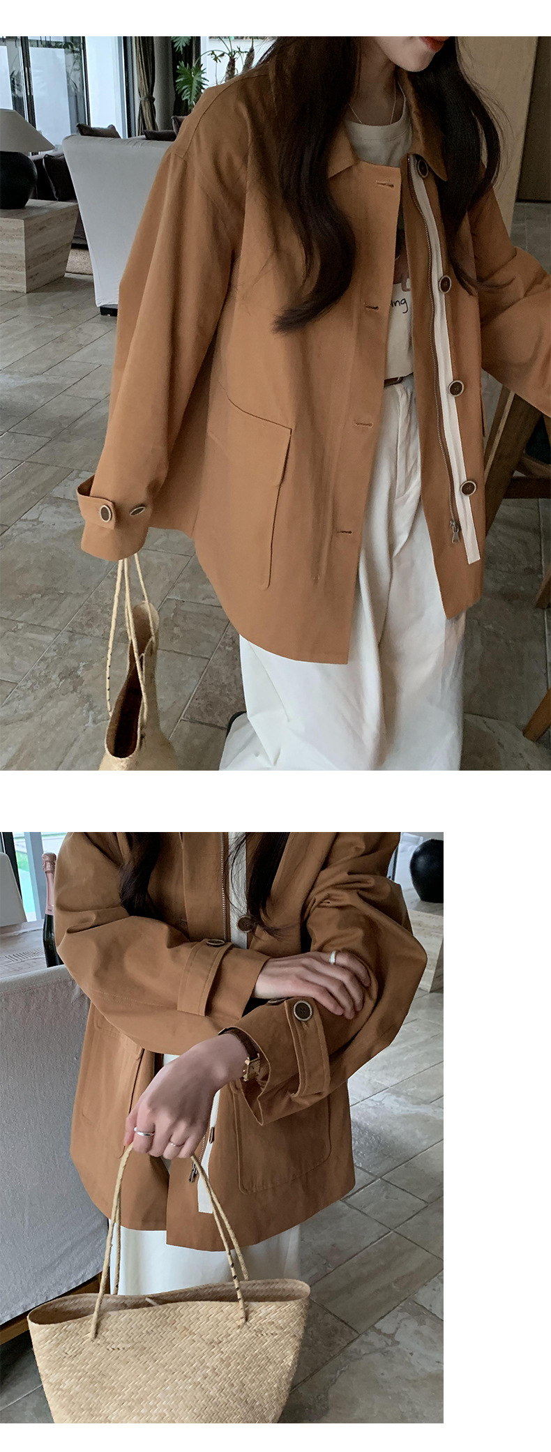 from anna retro trench coat 2024 spring new Korean style Maillard small design top