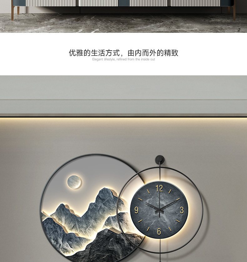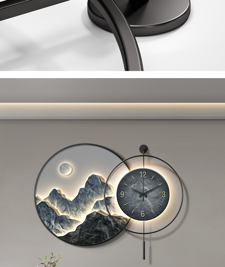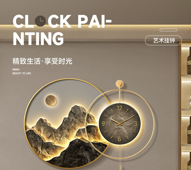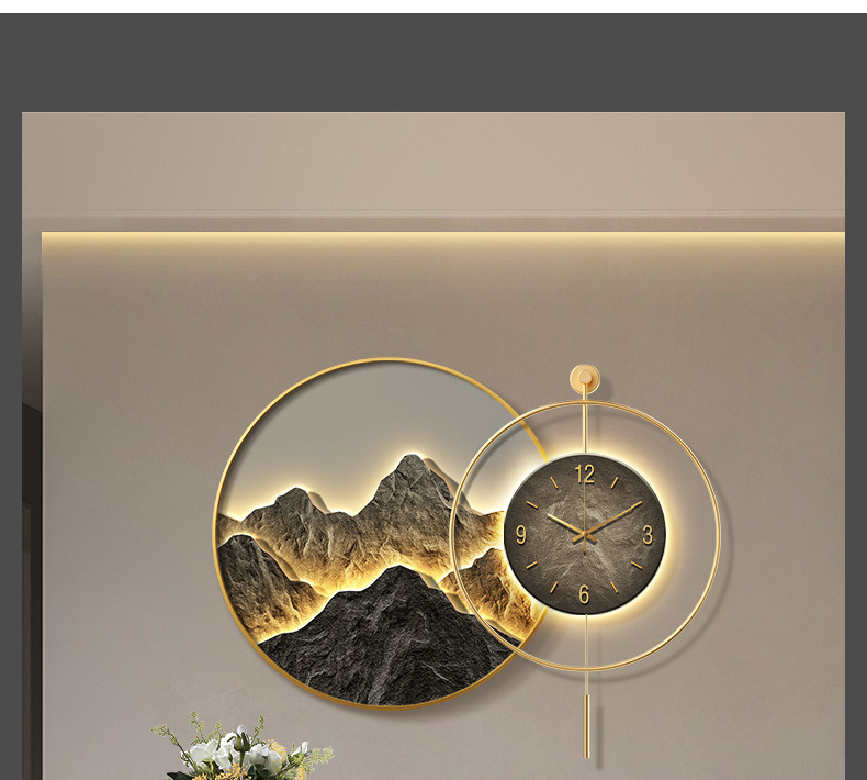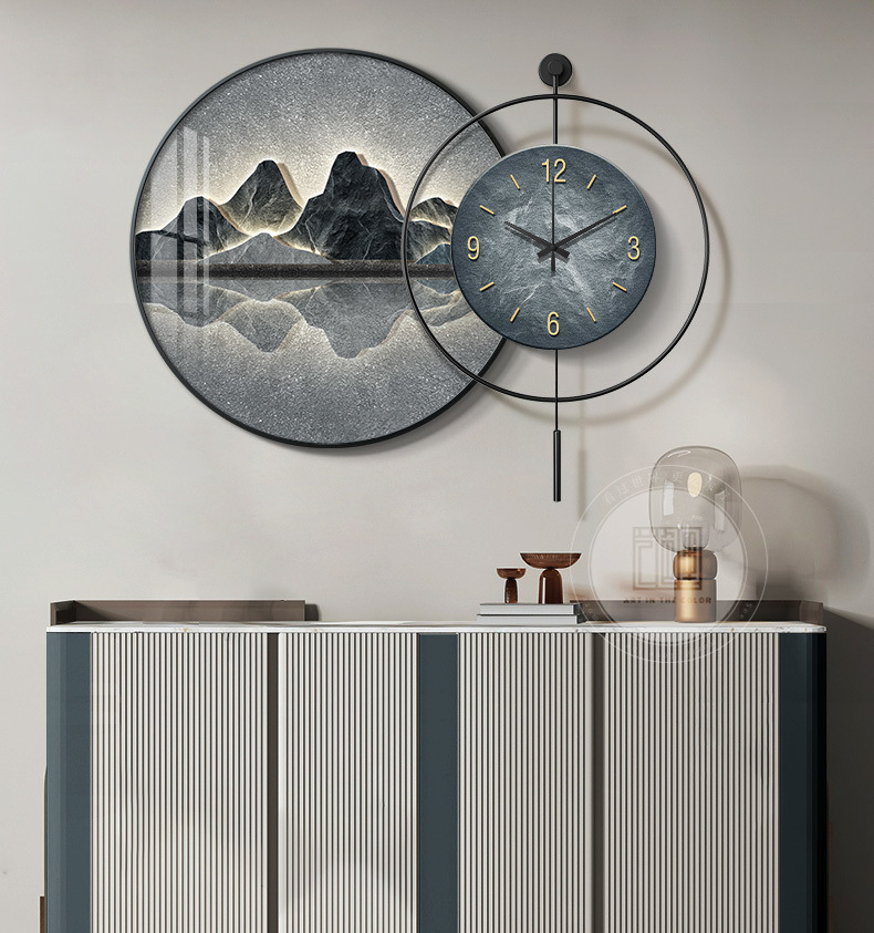 t% restaurant decorative painting with clock back with mountain hanging painting High sense living room landscape painting light luxury dining room wall