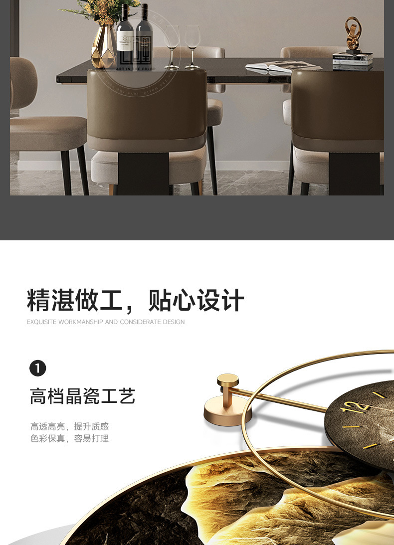 - E# without light (Crystal porcelain painting) light luxury gold frame + Golden Wall Clock#-round #80*80/wall clock 60*60