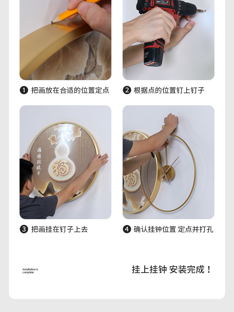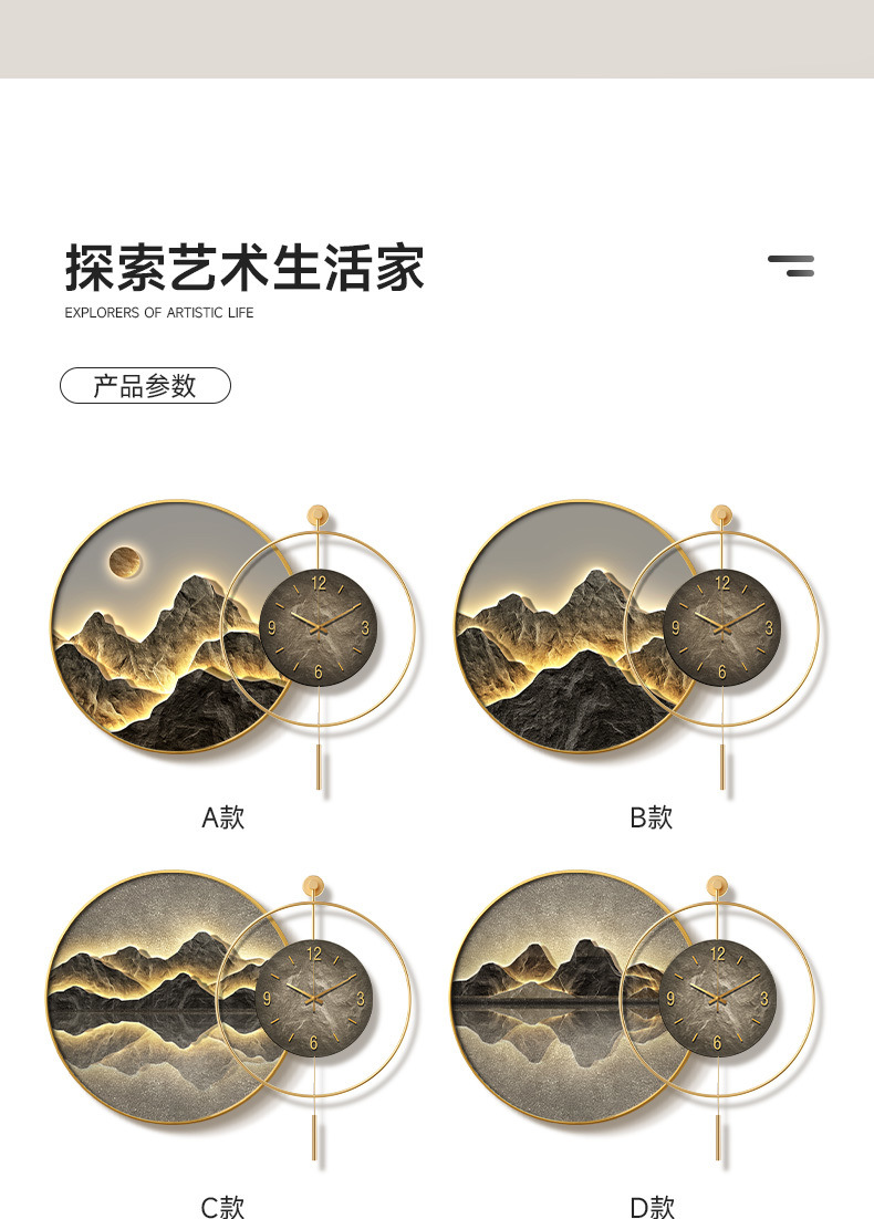 - B# without lights (canvas) light luxury gold frame + Golden Wall Clock#-round #80*80/wall clock 60*60